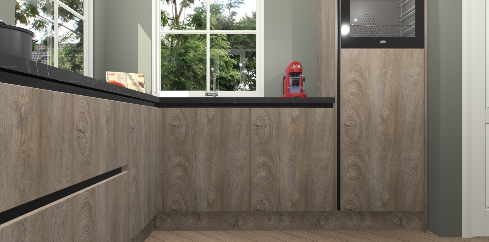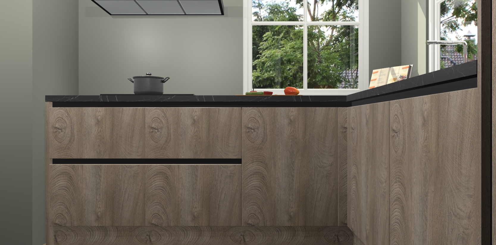 Maak kennis met de Cantaro Eiken greeploze keuken Pai: de perfecte keukenoplossing voor stijlzoekers die streven naar zowel schoonheid als een lange levensduur in hun huis. Dit tijdloze ontwerp is modern en verfijnd, waardoor het een prachtige aanvulling is op elke leefruimte.