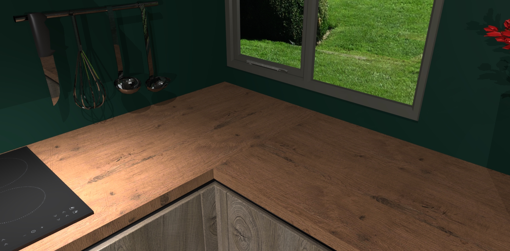 - Bij een hoekwerkblad zijn de hoeken in gevreesd en op maat gemaakt