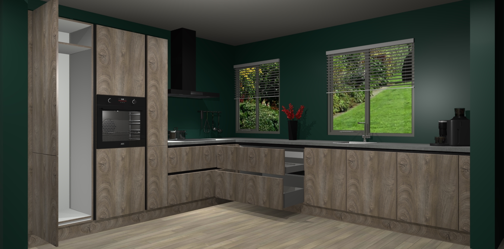 Welkom bij de Cantaro Eiken keuken Palermo. Deze prachtige keuken zal de komende jaren het middelpunt van de belangstelling in uw huis zijn. Uitgerust met vijf inbouwapparaten komt u nooit kookgereedschap tekort. Bovendien geeft de warme houtlook elke ruimte een uitnodigende en tijdloze uitstraling.