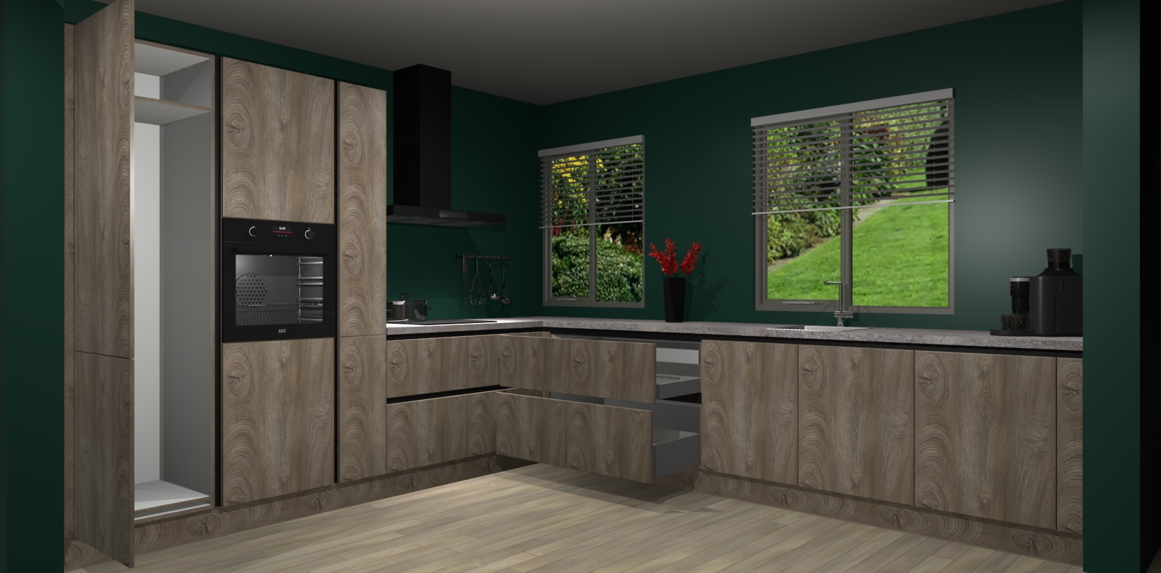 Welkom bij de Cantaro Eiken keuken Palermo. Deze prachtige keuken zal de komende jaren het middelpunt van de belangstelling in uw huis zijn. Uitgerust met vijf inbouwapparaten komt u nooit kookgereedschap tekort. Bovendien geeft de warme houtlook elke ruimte een uitnodigende en tijdloze uitstraling.