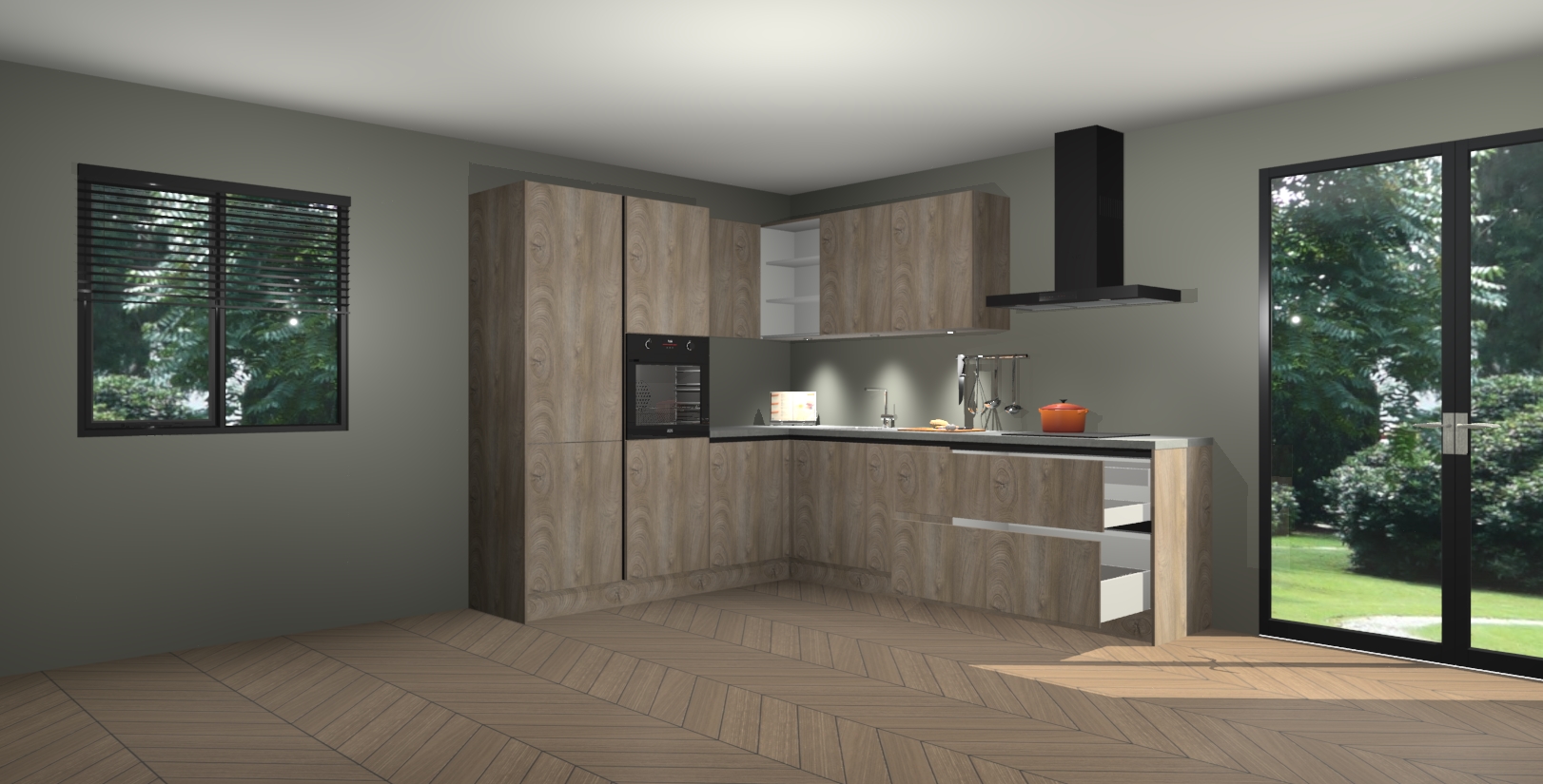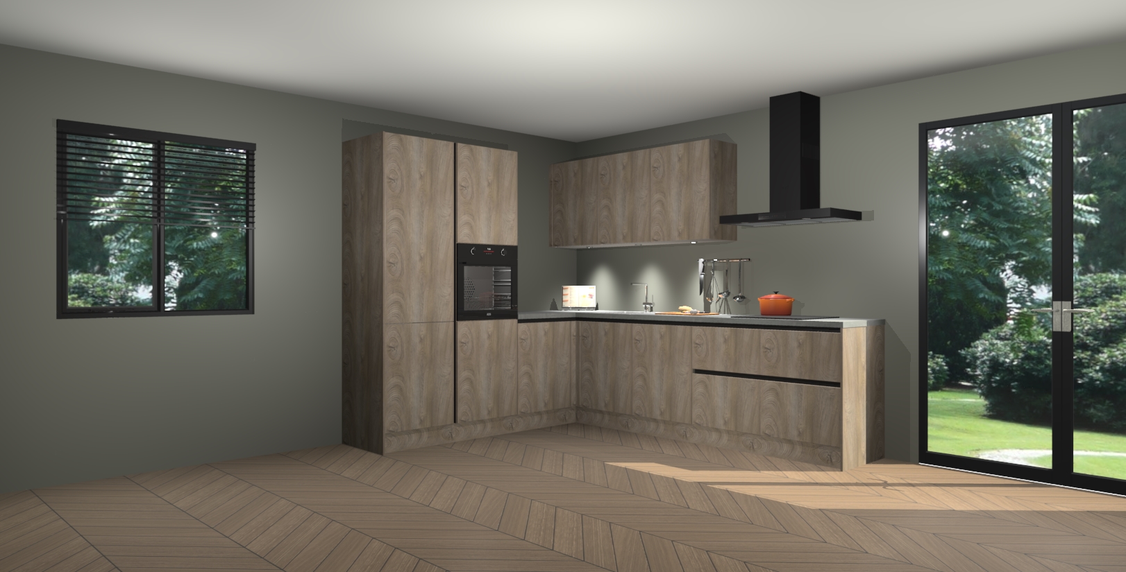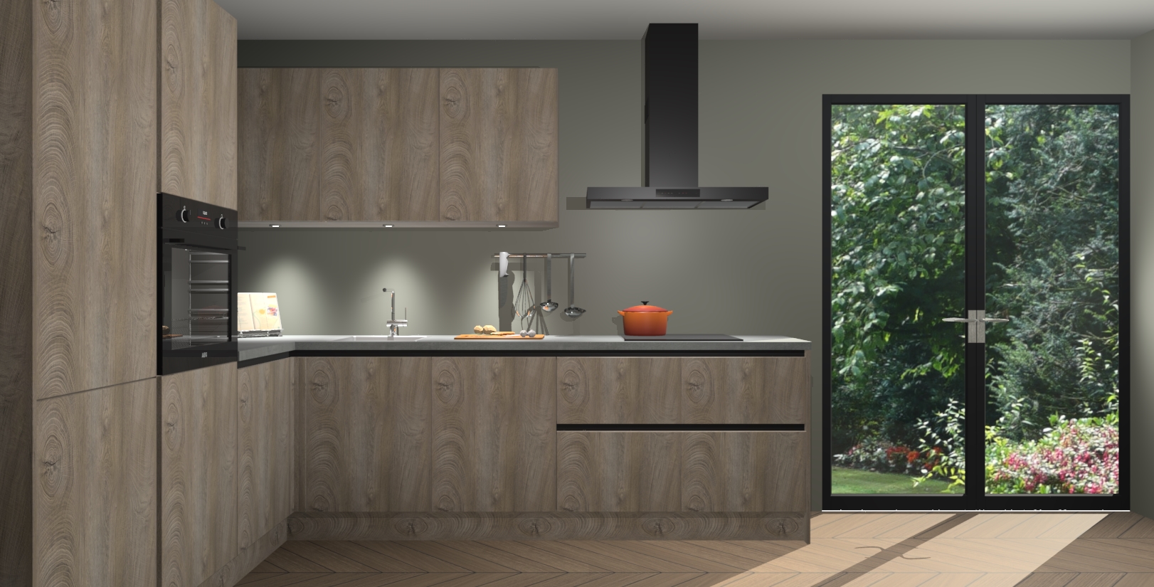 Maak kennis met de cantaro eiken greeploze keuken Parla - de perfecte aanvulling voor uw moderne keuken! Ervaar tijdloos design, elegantie en een chique uitstraling met onze zwarte handgrepen, soft-close deuren en veel opbergruimte. Dit alles wordt aangeboden tegen een vaste lage prijs voor ongeëvenaarde Duitse keukenkwaliteit!