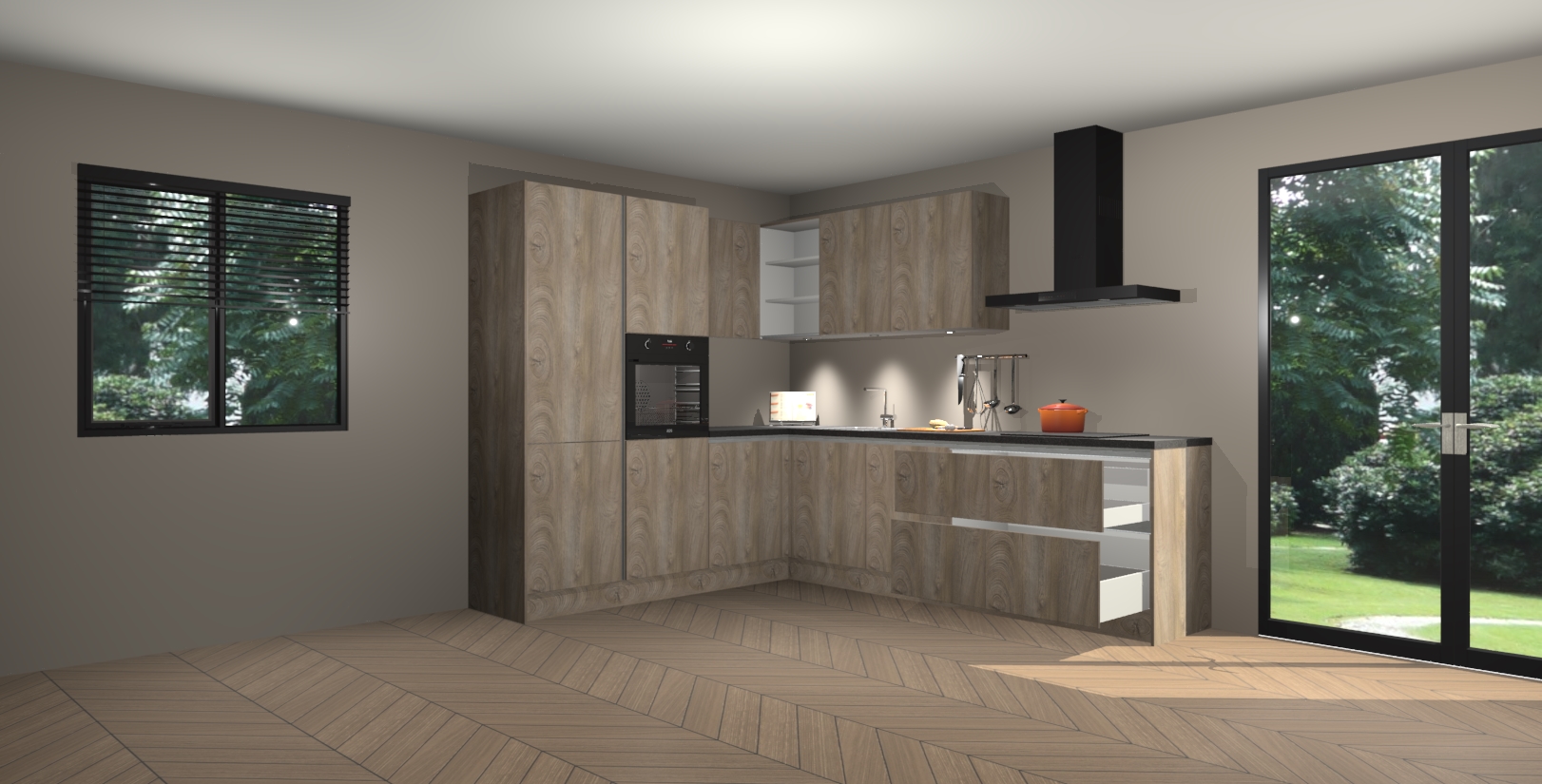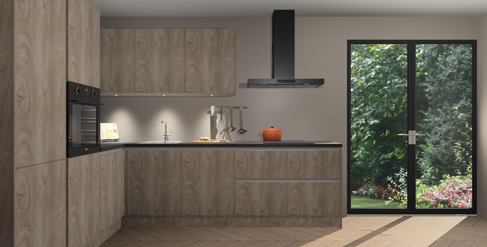 Maak kennis met de cantaro eiken greeploze keuken Parla - de perfecte aanvulling voor uw moderne keuken! Ervaar tijdloos design, elegantie en een chique uitstraling met onze zwarte handgrepen, soft-close deuren en veel opbergruimte. Dit alles wordt aangeboden tegen een vaste lage prijs voor ongeëvenaarde Duitse keukenkwaliteit!