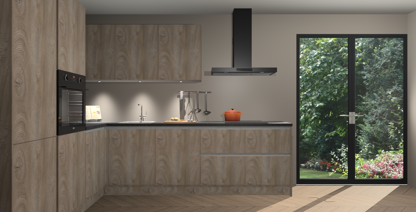 Met de cantaro eiken greeploze keuken Parla Maakt u van uw keuken het pronkstuk van uw huis. Stijlvol en toch praktisch, de nieuwste look voor wie meer waarde en charme aan zijn huis wil toevoegen. Met prachtige zwarte handgrepen die zich lenen voor een klassieke stijlbron, zal u niet teleurgesteld zijn in het resultaat. De soft-close deurscharnieren geven een gevoel van luxe omdat ze zachtjes bewegen zonder storende of krakende geluiden te veroorzaken.