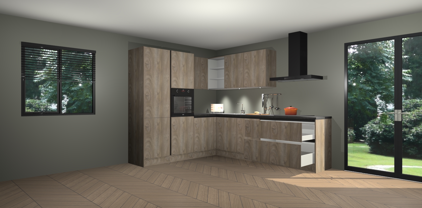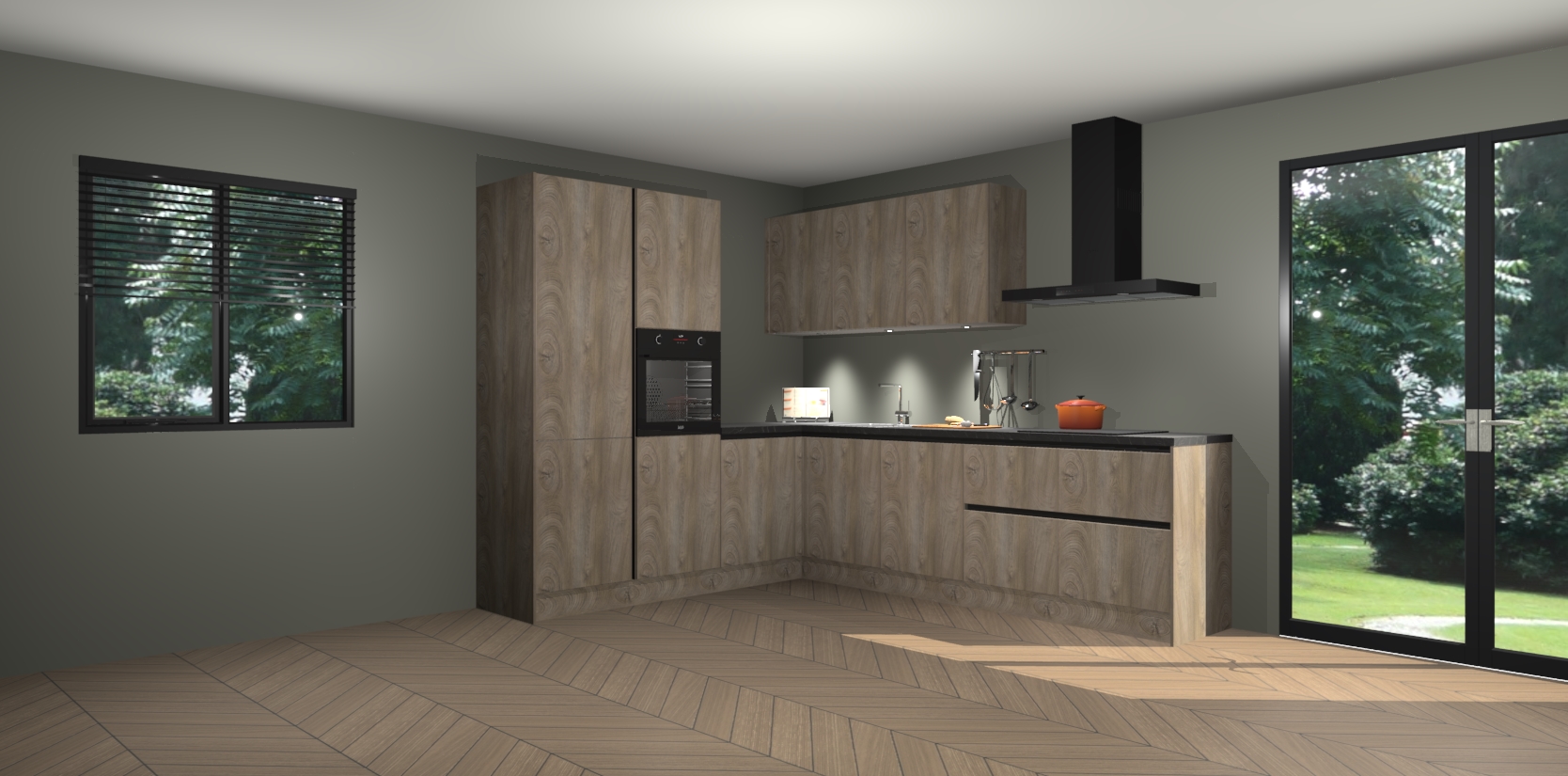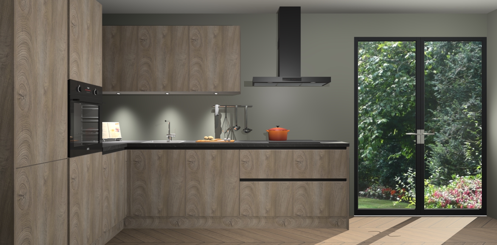 Maak kennis met de cantaro eiken greeploze keuken Parla - de perfecte aanvulling voor uw moderne keuken! Ervaar tijdloos design, elegantie en een chique uitstraling met onze zwarte handgrepen, soft-close deuren en veel opbergruimte. Dit alles wordt aangeboden tegen een vaste lage prijs voor ongeëvenaarde Duitse keukenkwaliteit!