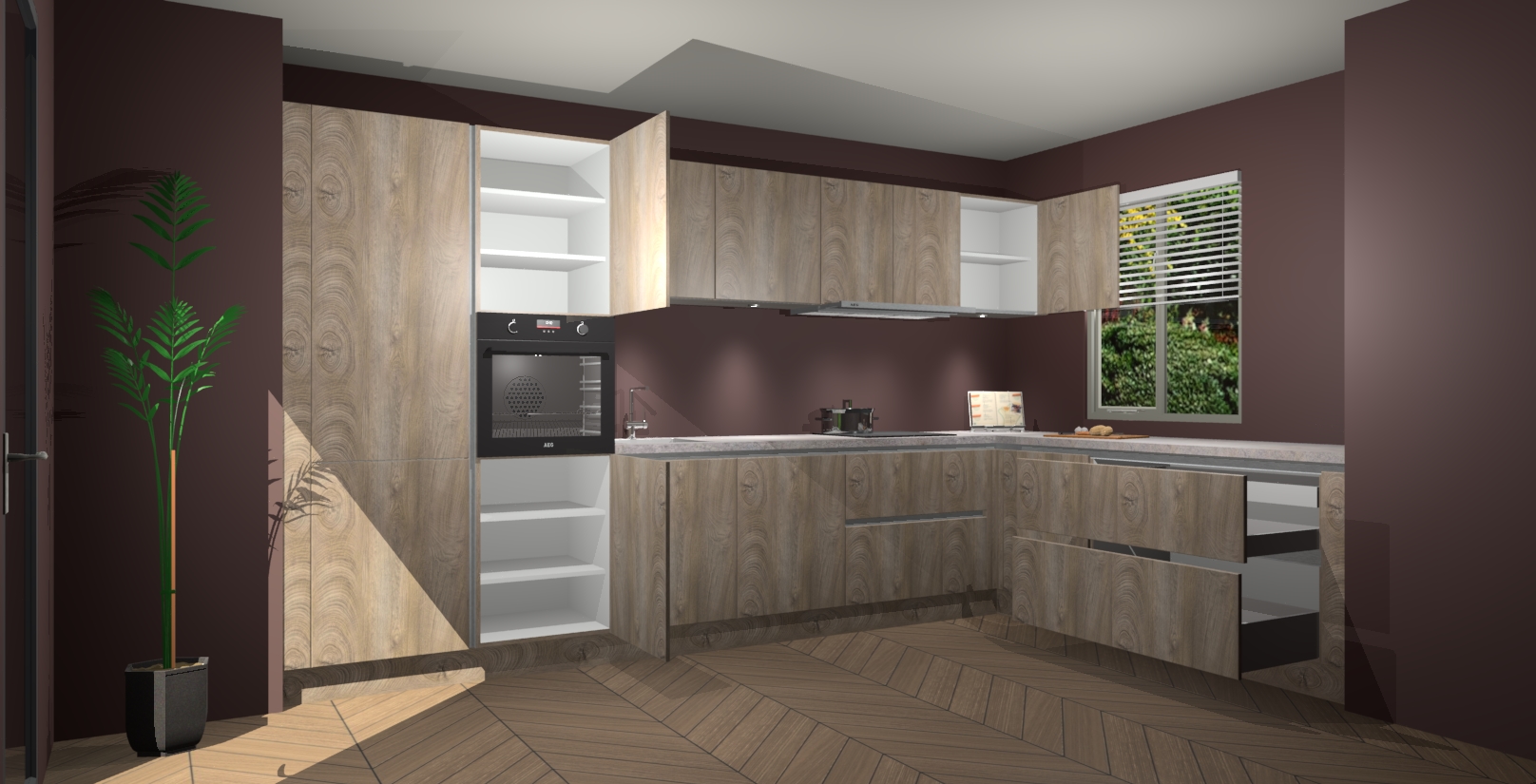 Verwelkom de natuurlijke warmte van de Cantaro Eiken greeploze keuken Petten in uw huis. Deze prachtige hoekkeuken met zijn moderne design en warme houten look geeft u meer dan genoeg opbergruimte om uw comfortabel te voelen in uw keuken. Geniet van soft-close deuren die al uw gasten het gevoel zullen geven dat ze zich in een luxueuze ruimte bevinden.