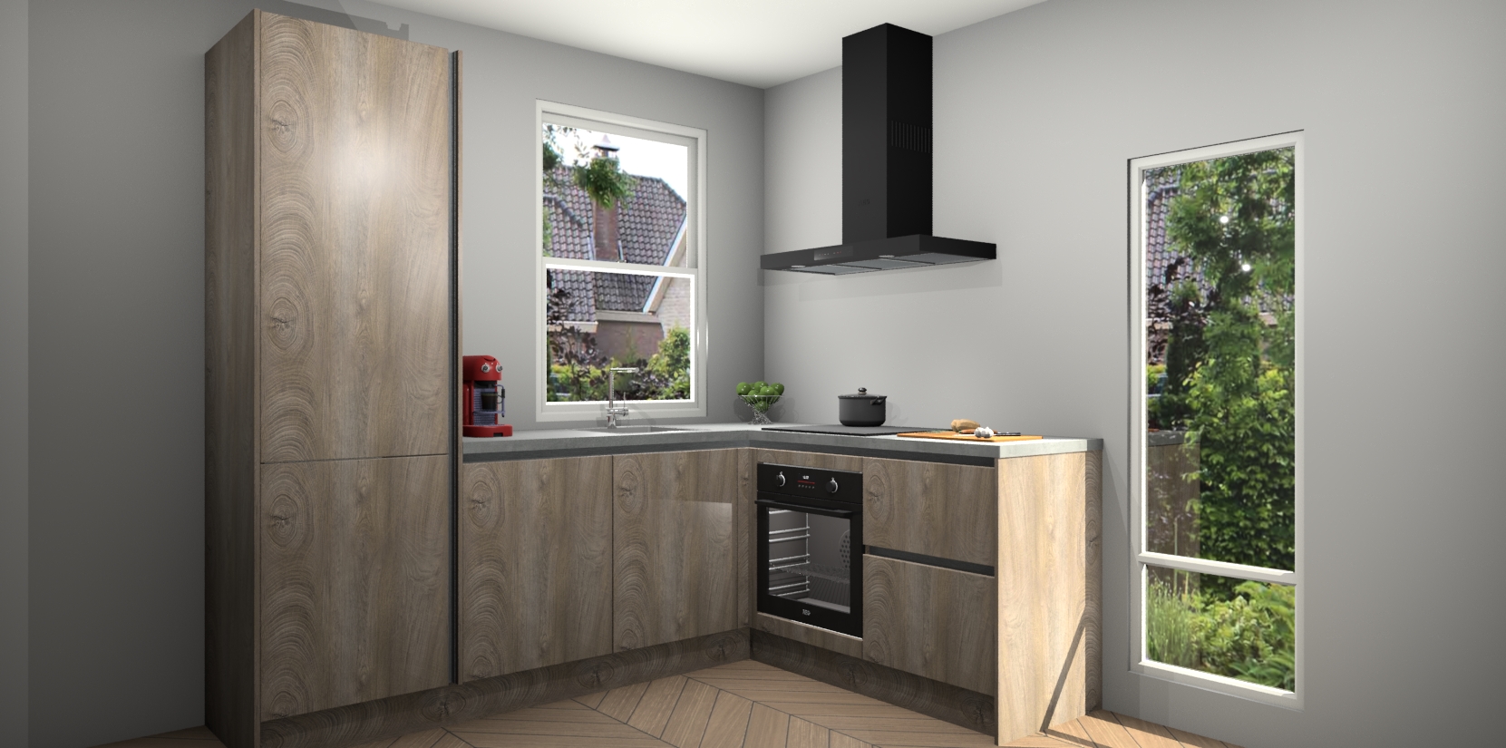 De prachtige Cantaro Eiken greeploze keuken Phuket is de perfecte keuze als u op zoek bent naar een moderne hoekkeuken met alle luxe en comfort die u kunt verwachten! De uitstraling in het houtlook-design draagt bij aan de warme sfeer die u nu al voelt wanneer u er naar kijkt. Heeft u genoeg van ouderwetse keukens? Probeer dan direct deze moderne, mooie hoekkeukens en laat iedereen verbluft achter!