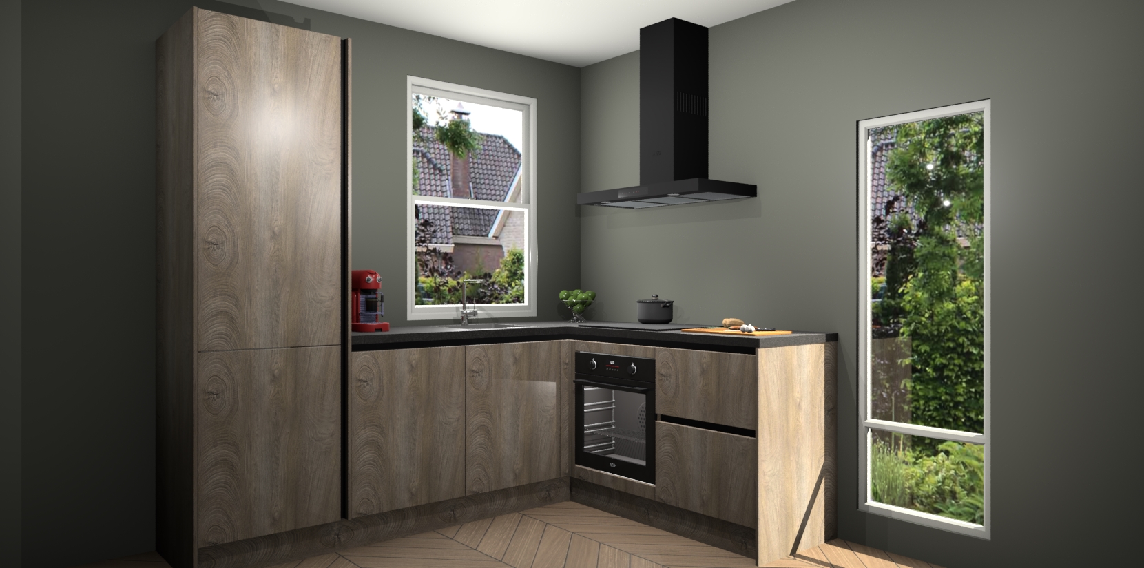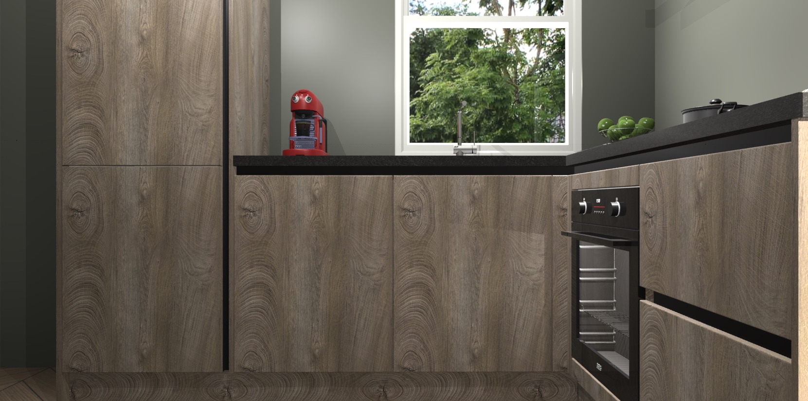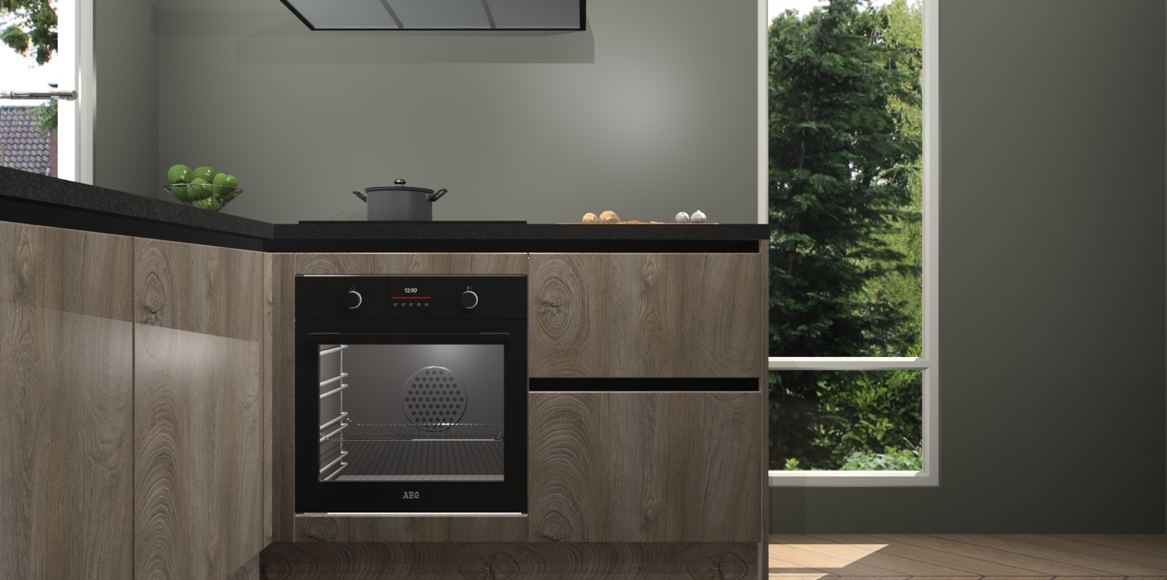 De Cantaro Eiken greeploze keuken Phuket heeft alles wat u maar kunt wensen. Niet alleen zijn er softclose deuren, maar ook 5 ingebouwde apparaten: een oven, inductiekookplaat, afzuigkap, vaatwasser en koelkast - waarbij u later gemakkelijk naar het AEG merk, van inductiekookplaat naar kookplaat met geïntegreerde afzuiging of van oven naar combimagnetron kunt upgraden. Dat alles tegen een vast laag tarief! Bovendien geeft de Cantaro Eiken greeploze keuken Phuket supersnelle levering van 7 weken. Echt iets voor u als u er niet op wilt wachten om het resultaat te zien in eigen keuken!