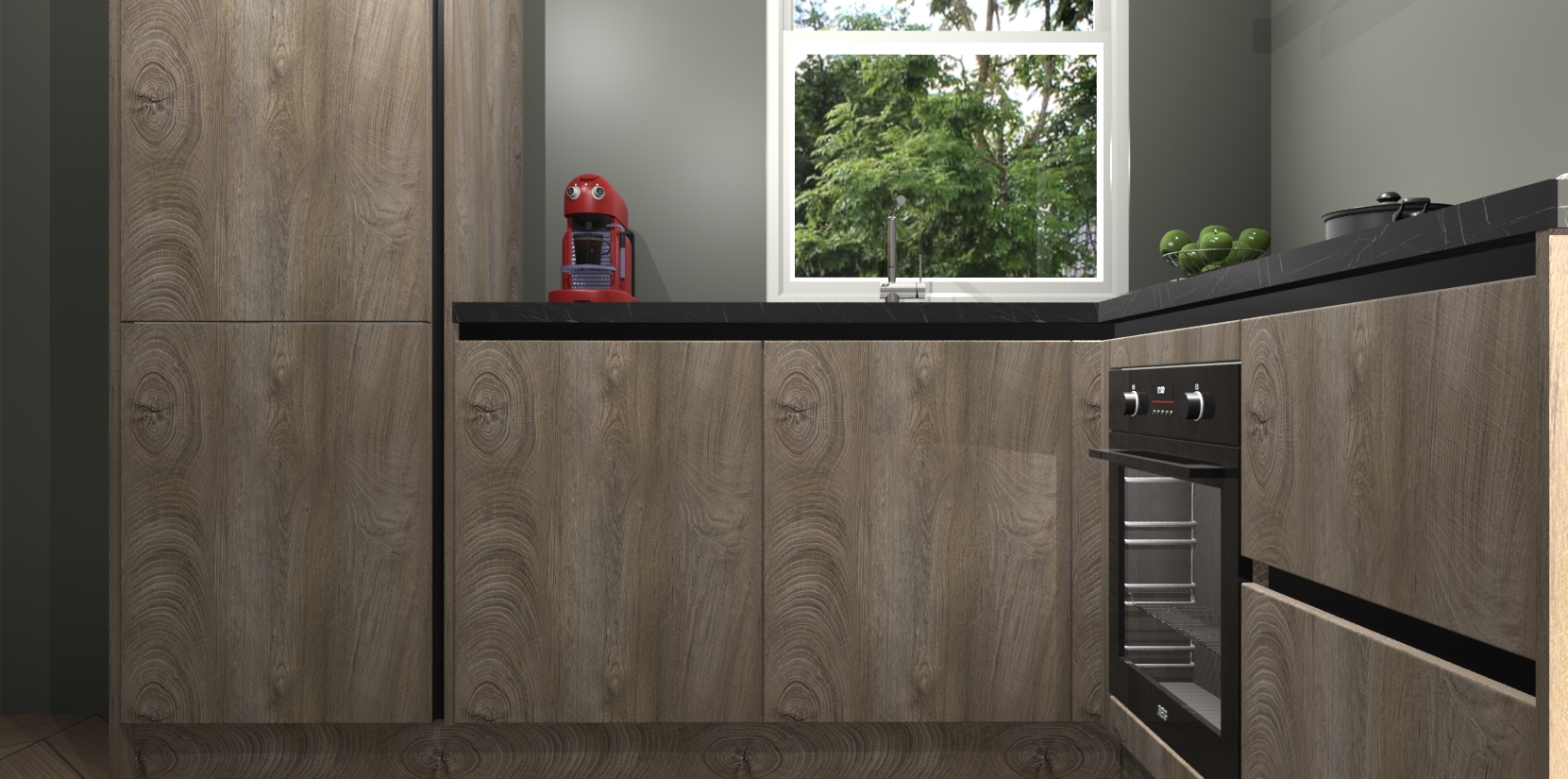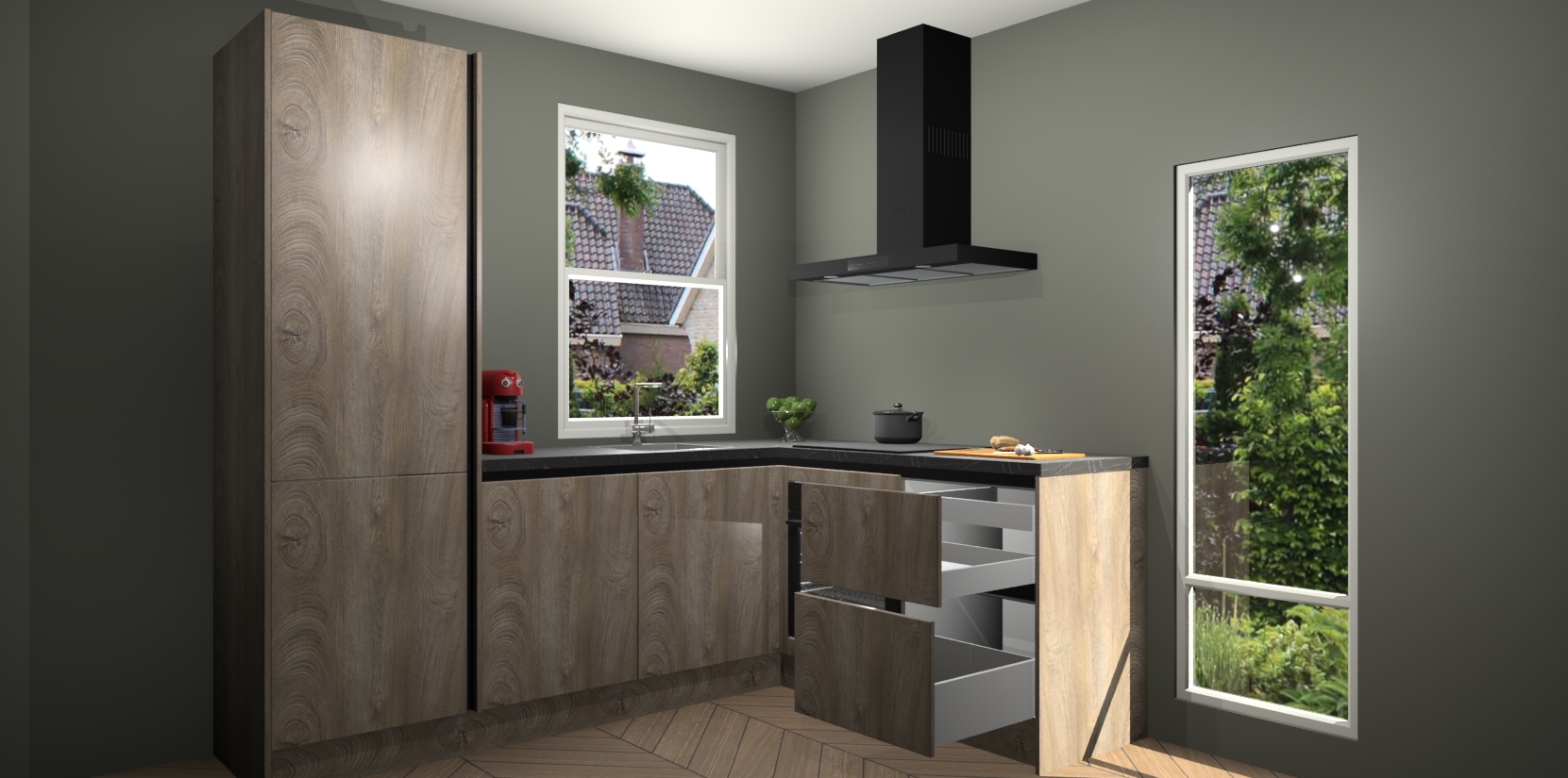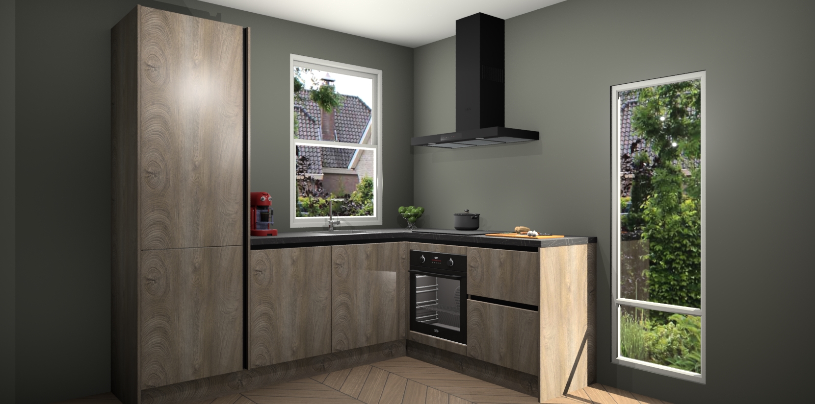 De prachtige Cantaro Eiken greeploze keuken Phuket is de perfecte keuze als u op zoek bent naar een moderne hoekkeuken met alle luxe en comfort die u kunt verwachten! De uitstraling in het houtlook-design draagt bij aan de warme sfeer die u nu al voelt wanneer u er naar kijkt. Heeft u genoeg van ouderwetse keukens? Probeer dan direct deze moderne, mooie hoekkeukens en laat iedereen verbluft achter!