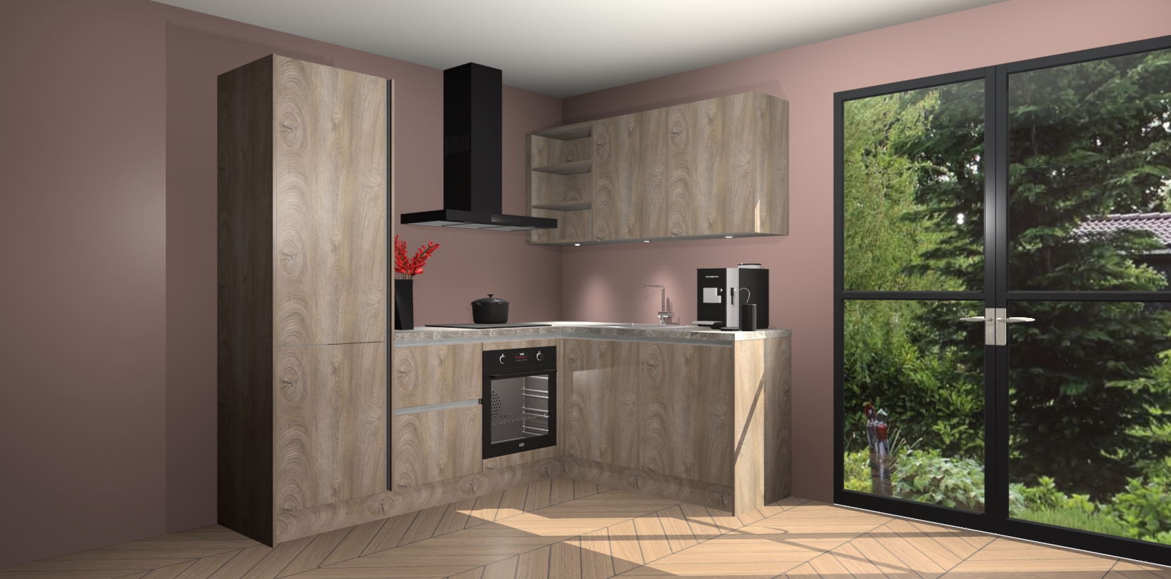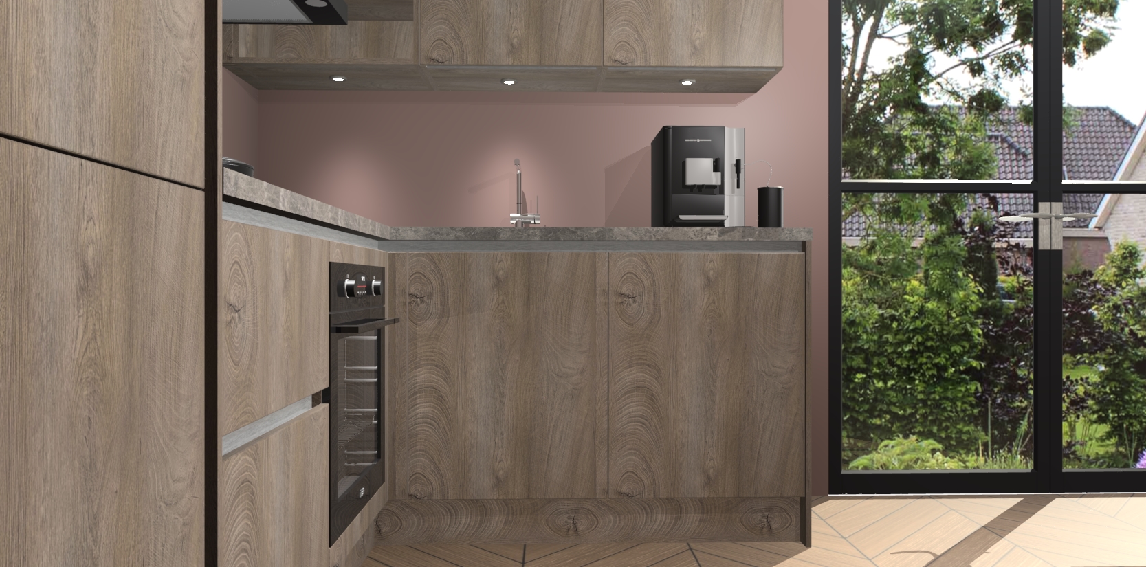 Wauw, dit is de Cantaro Eiken greeploze keuken Pilsen! U kunt gerust zeggen dat u elegantie combineert met functionaliteit met deze keuken. Met een modern en chique ontwerp is de keuken precies wat u nodig heeft om uw ruimte te verfraaien. De binnenzijde van de kasten is in dezelfde donkere kleur als de buitenzijde voor een uniforme look, compleet met softclose-kasten die stil sluiten.
