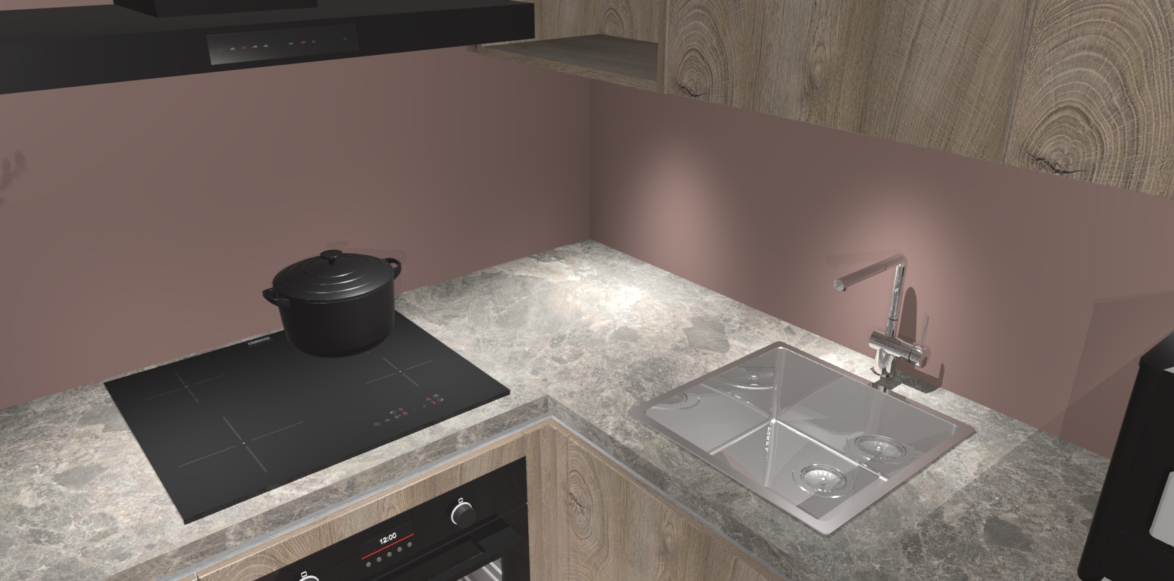 - Uitsparing van kookplaat, spoelbak en kraan dient u zelf te verzorgen.