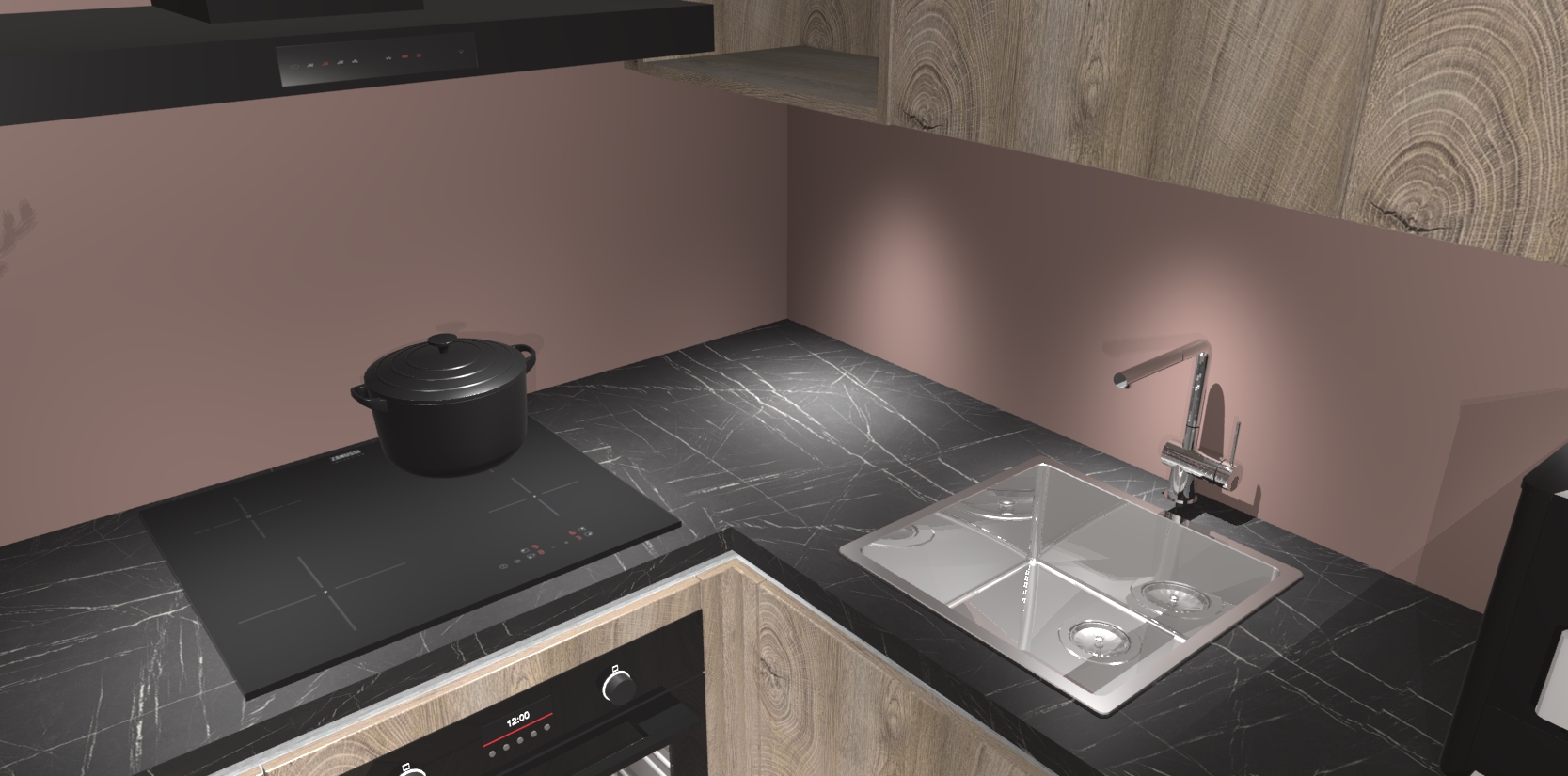 - Uitsparing van kookplaat, spoelbak en kraan dient u zelf te verzorgen.