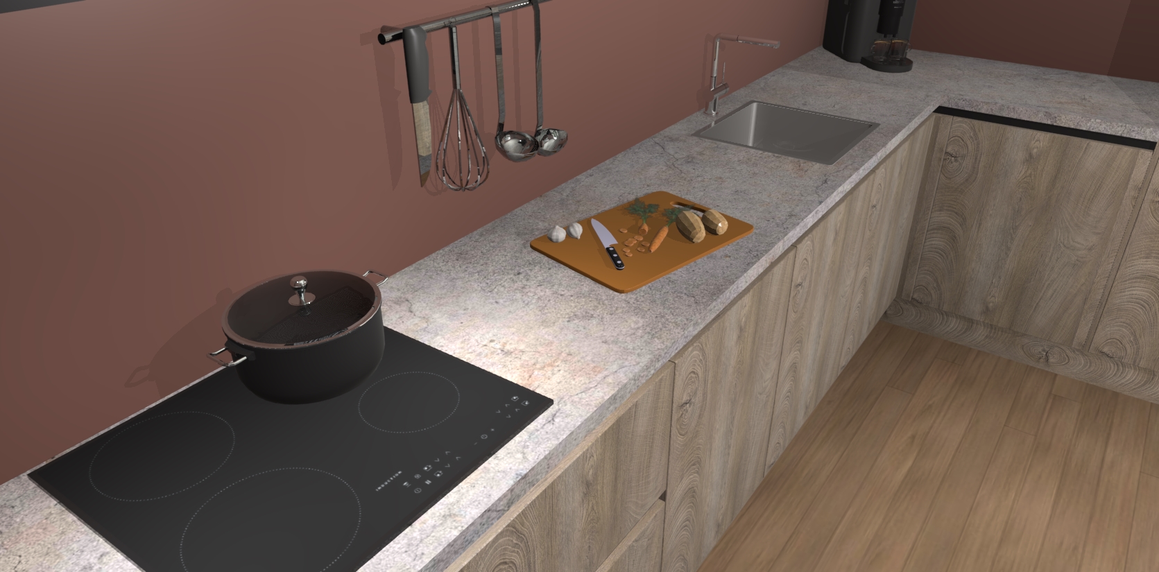 - Bij een hoekwerkblad zijn de hoeken in gevreesd en op maat gemaakt