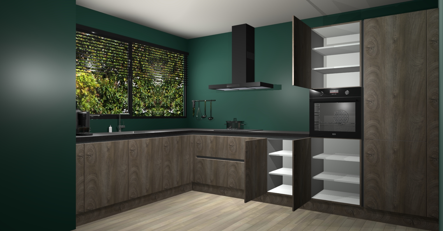 Met een modern, tijdloos design en ruime opslagruimte, zult u zich in no-time thuis voelen in uw nieuwe keuken. Uw leven wordt eenvoudiger met de soft-close deuren die voor het ultieme stille comfort zorgen - geen geluid dat u stoort terwijl u kookt. Ook is de keuken voorzien van 5 ingebouwde apparaten: een oven, inductie kookplaat, afzuigkap, vaatwasser en koelkast. Deze kunnen gemakkelijk na bestelling worden bijgewerkt naar AEG - waardoor uw luxe ervaring compleet is.