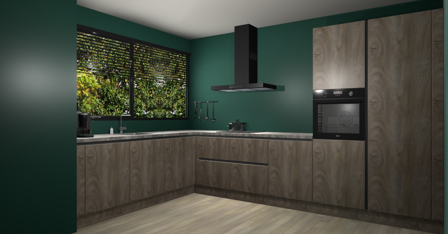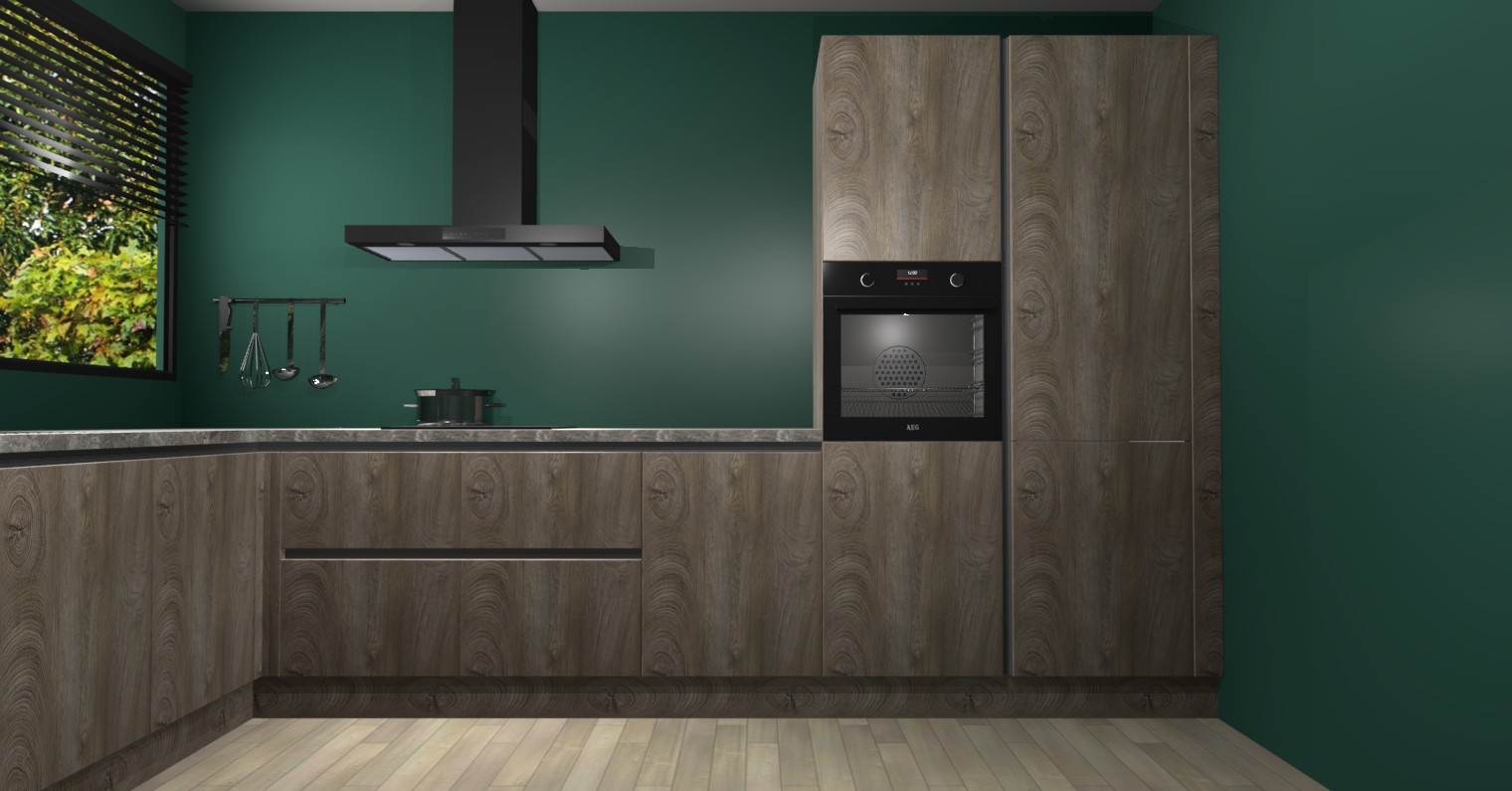 Met een modern, tijdloos design en ruime opslagruimte, zult u zich in no-time thuis voelen in uw nieuwe keuken. Uw leven wordt eenvoudiger met de soft-close deuren die voor het ultieme stille comfort zorgen - geen geluid dat u stoort terwijl u kookt. Ook is de keuken voorzien van 5 ingebouwde apparaten: een oven, inductie kookplaat, afzuigkap, vaatwasser en koelkast. Deze kunnen gemakkelijk na bestelling worden bijgewerkt naar AEG - waardoor uw luxe ervaring compleet is.