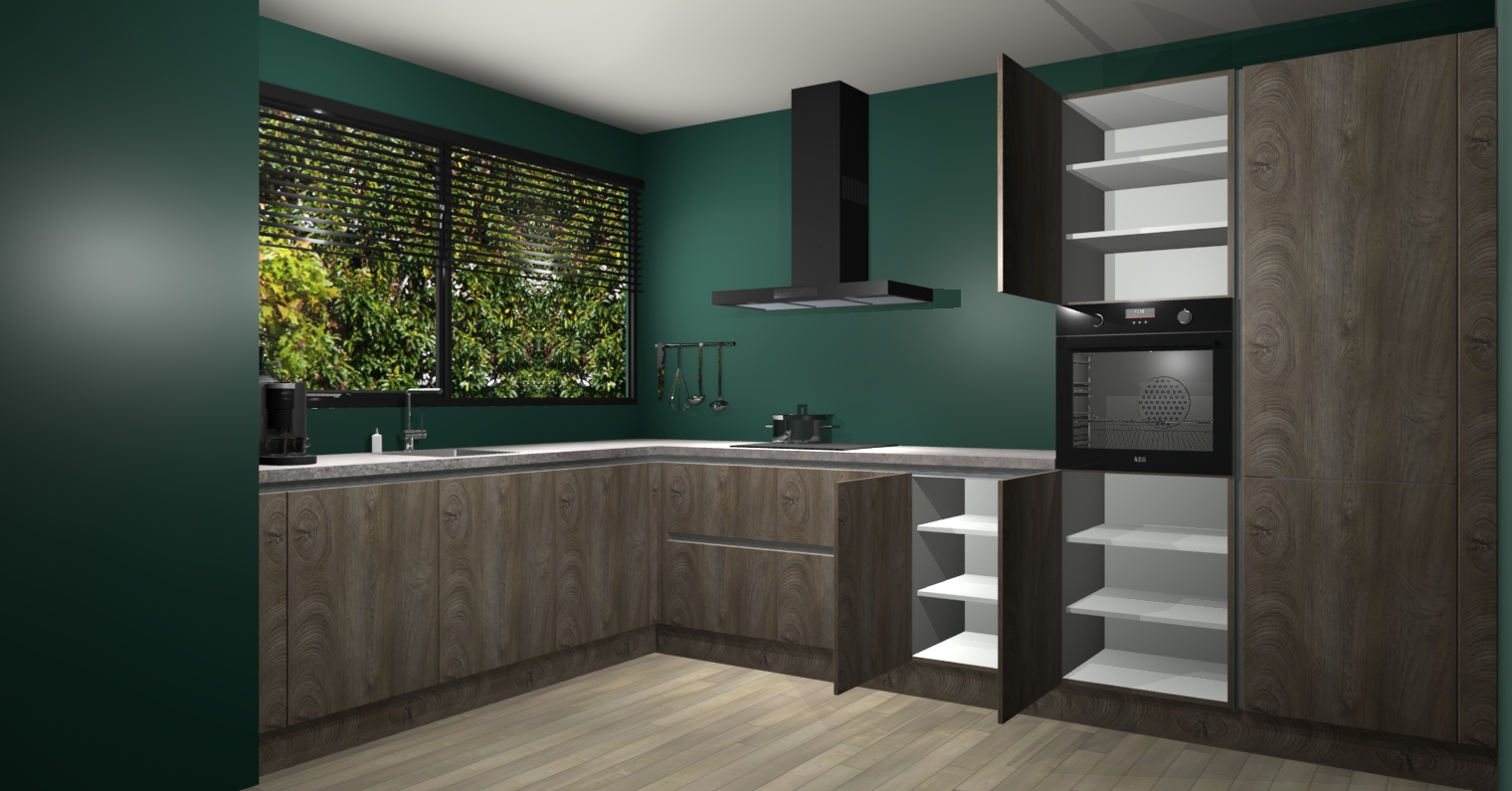Met een modern, tijdloos design en ruime opslagruimte, zult u zich in no-time thuis voelen in uw nieuwe keuken. Uw leven wordt eenvoudiger met de soft-close deuren die voor het ultieme stille comfort zorgen - geen geluid dat u stoort terwijl u kookt. Ook is de keuken voorzien van 5 ingebouwde apparaten: een oven, inductie kookplaat, afzuigkap, vaatwasser en koelkast. Deze kunnen gemakkelijk na bestelling worden bijgewerkt naar AEG - waardoor uw luxe ervaring compleet is.