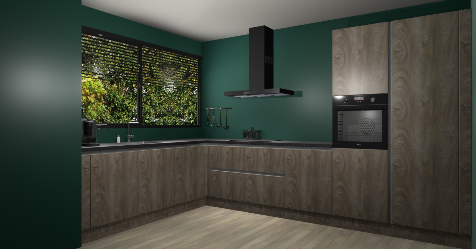 Met een modern, tijdloos design en ruime opslagruimte, zult u zich in no-time thuis voelen in uw nieuwe keuken. Uw leven wordt eenvoudiger met de soft-close deuren die voor het ultieme stille comfort zorgen - geen geluid dat u stoort terwijl u kookt. Ook is de keuken voorzien van 5 ingebouwde apparaten: een oven, inductie kookplaat, afzuigkap, vaatwasser en koelkast. Deze kunnen gemakkelijk na bestelling worden bijgewerkt naar AEG - waardoor uw luxe ervaring compleet is.