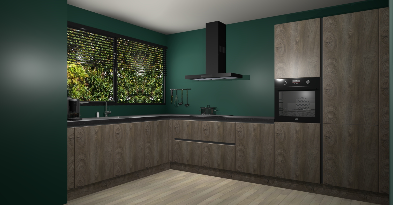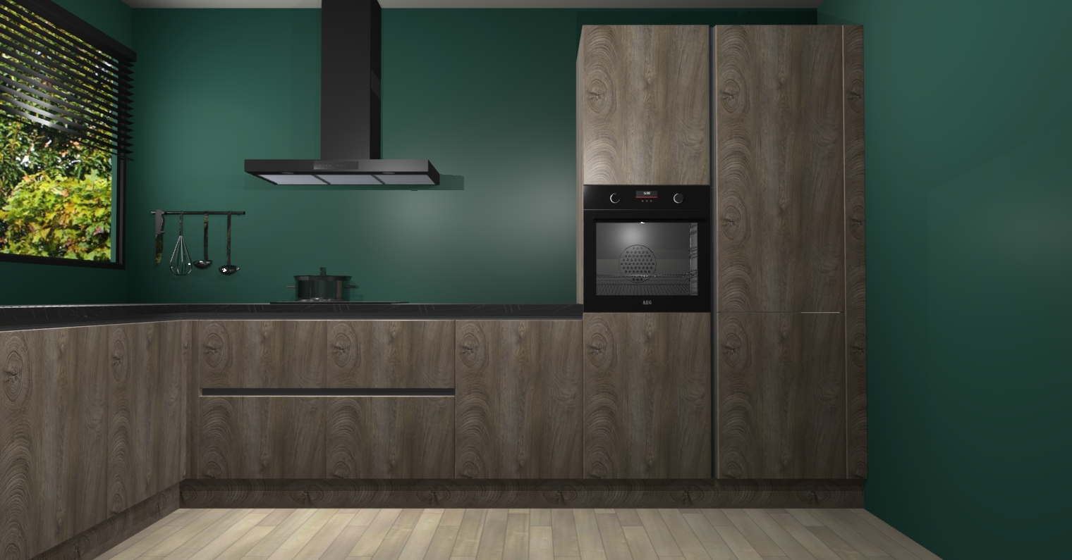 Met een modern, tijdloos design en ruime opslagruimte, zult u zich in no-time thuis voelen in uw nieuwe keuken. Uw leven wordt eenvoudiger met de soft-close deuren die voor het ultieme stille comfort zorgen - geen geluid dat u stoort terwijl u kookt. Ook is de keuken voorzien van 5 ingebouwde apparaten: een oven, inductie kookplaat, afzuigkap, vaatwasser en koelkast. Deze kunnen gemakkelijk na bestelling worden bijgewerkt naar AEG - waardoor uw luxe ervaring compleet is.
