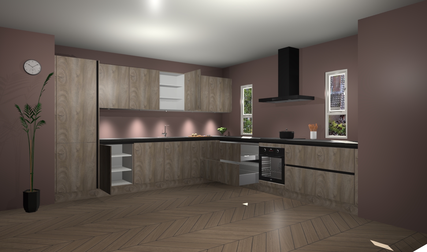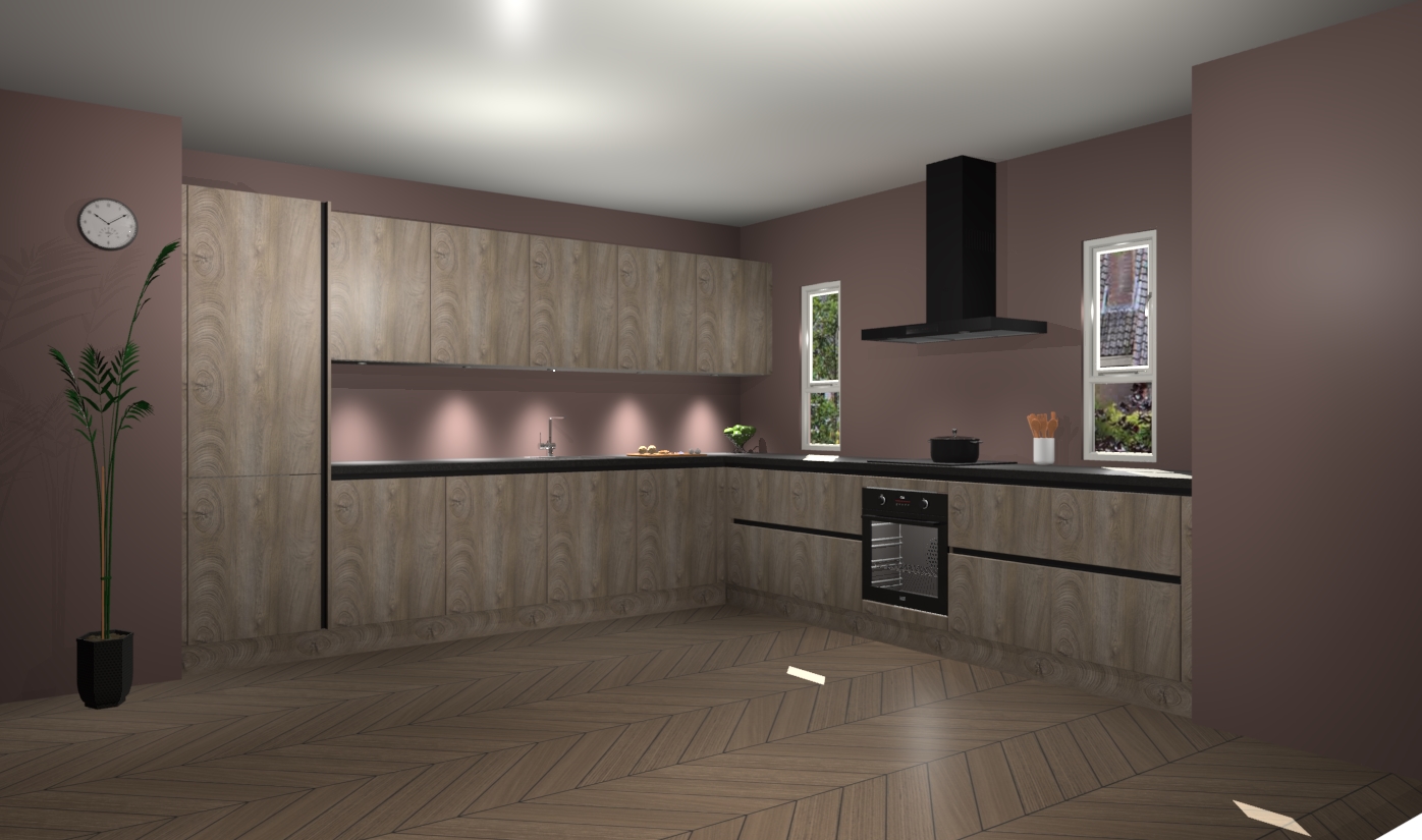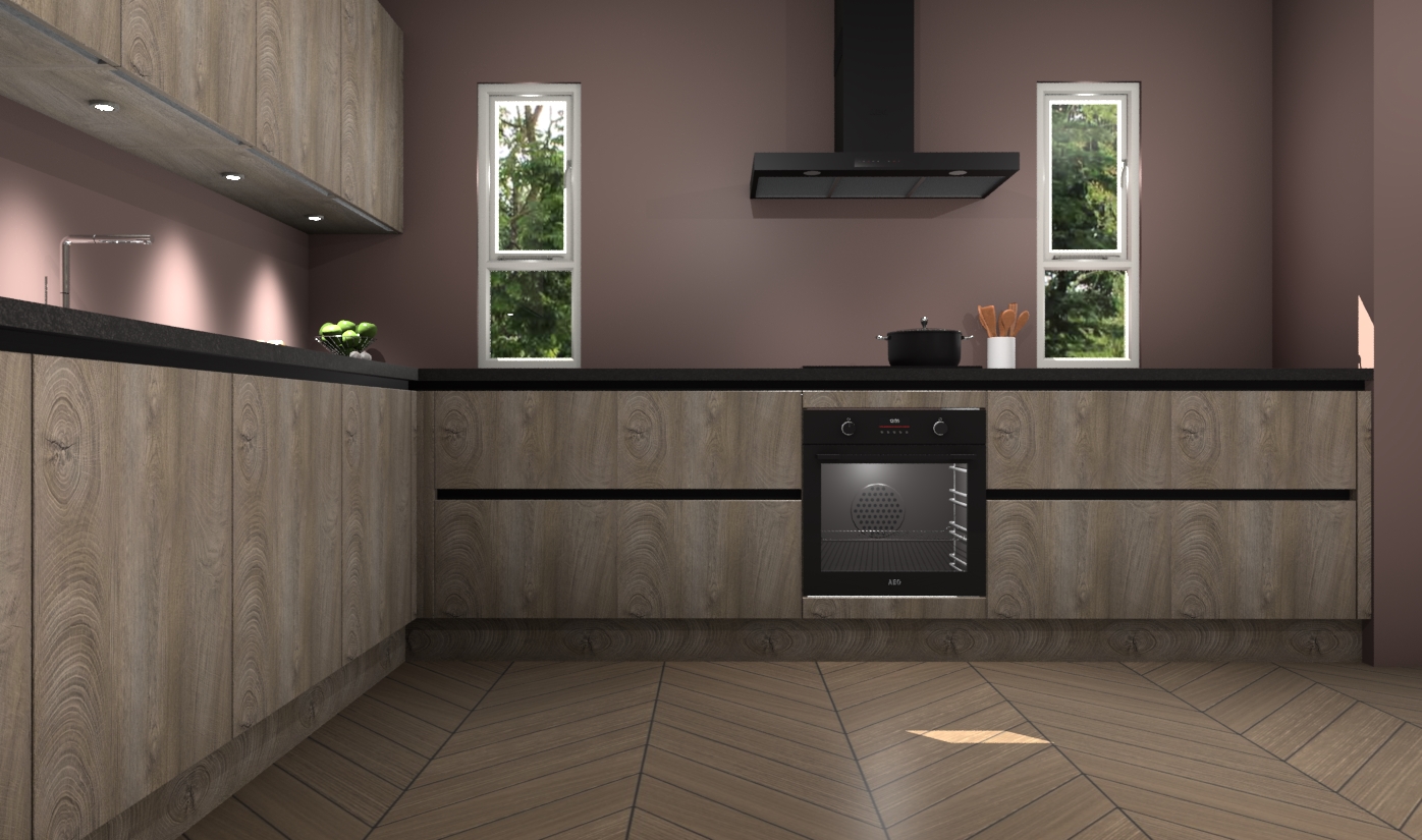 De cantaro eiken greeploze keuken is een ideale hoekkeuken en heeft alle functies en apparatuur die u maar nodig kunt hebben. Bij de bestelling krijgt u een oven, inductiekookplaat, afzuigkap, vaatwasser en koelkast - deze kunnen desgewenst eenvoudig worden uitgebreid naar AEG na bestellen. Elke kast wordt ook voor gemonteerd geleverd met soft close deuren die jarenlang gebruik beloven. Stelt u zich voor dat u geen gedoe heeft met vervelende montage - vanaf het moment dat u uw bestelling plaats, duurt het slechts 7 weken voor het bij u thuis geleverd wordt.