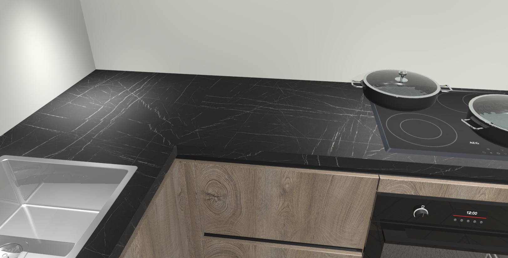 - Bij een hoekwerkblad zijn de hoeken in gevreesd en op maat gemaakt