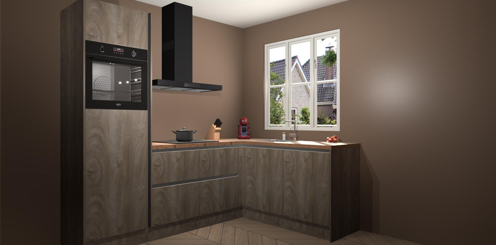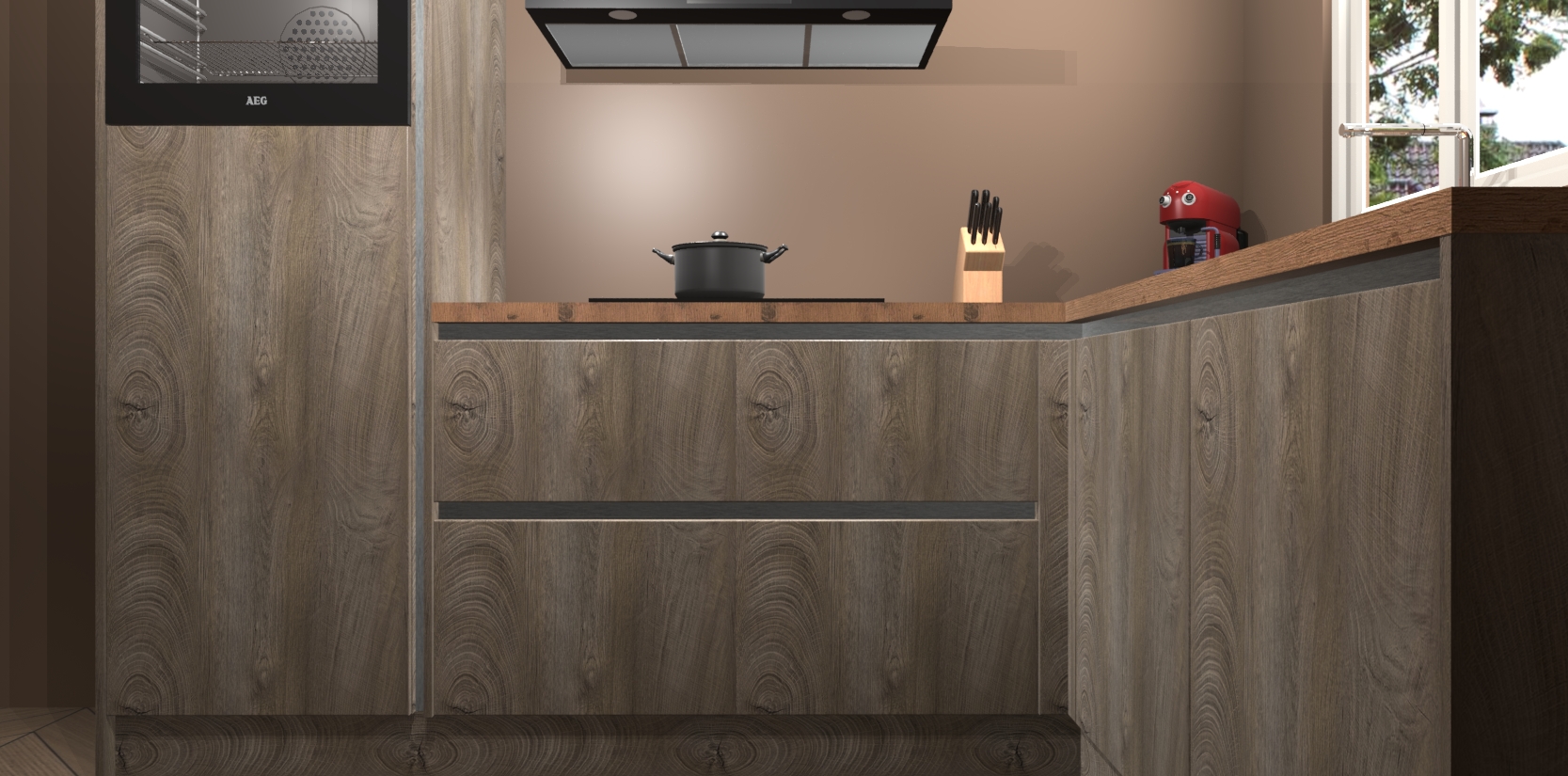 Dit model biedt u voldoende opbergruimte en vijf ingebouwde apparaten: een oven, inductiekookplaat, afzuigkap, vaatwasser en koelkast. Deze apparaten kunnen gemakkelijk worden geüpgrade naar AEG nadat u besteld heeft. De verschillende laden en kastjes bevatten softclose-deuren waardoor ze gezellig dichtvallen met een geruststellend helemaal geruisloos geluid. En dat is nog niet alles! We garanderen ook dat de prijs altijd laag blijft - dus haal nu uw Cantaro Eiken greeploze keuken Victoria terwijl het kan.