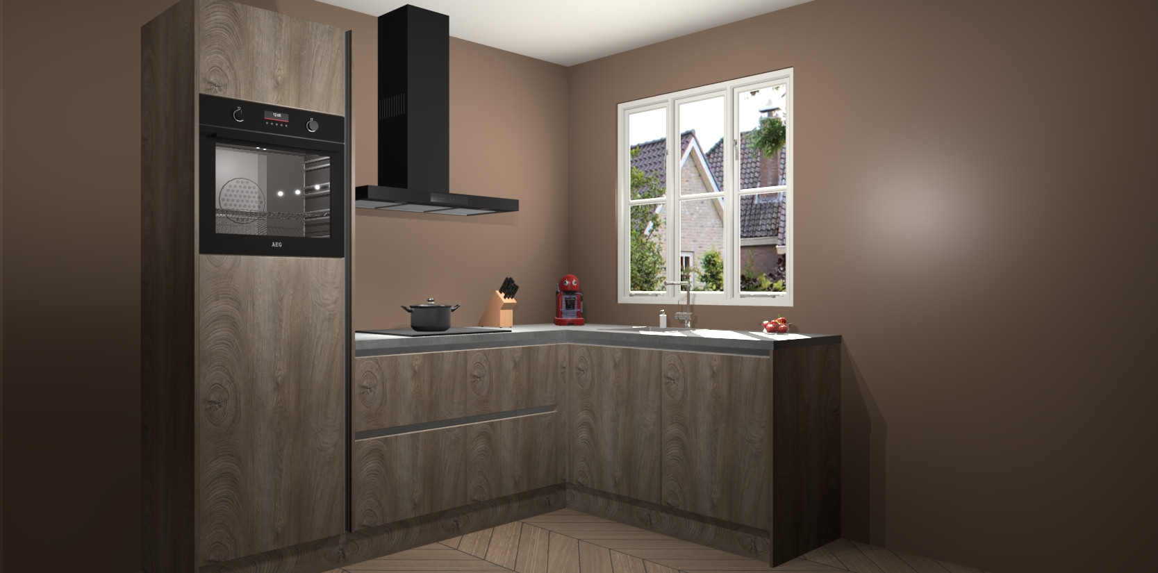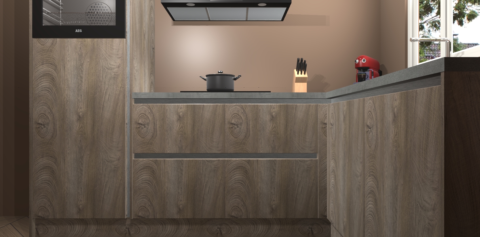 Dit model biedt u voldoende opbergruimte en vijf ingebouwde apparaten: een oven, inductiekookplaat, afzuigkap, vaatwasser en koelkast. Deze apparaten kunnen gemakkelijk worden geüpgrade naar AEG nadat u besteld heeft. De verschillende laden en kastjes bevatten softclose-deuren waardoor ze gezellig dichtvallen met een geruststellend helemaal geruisloos geluid. En dat is nog niet alles! We garanderen ook dat de prijs altijd laag blijft - dus haal nu uw Cantaro Eiken greeploze keuken Victoria terwijl het kan.
