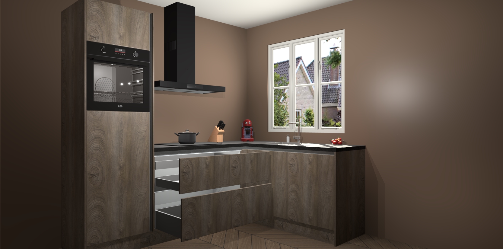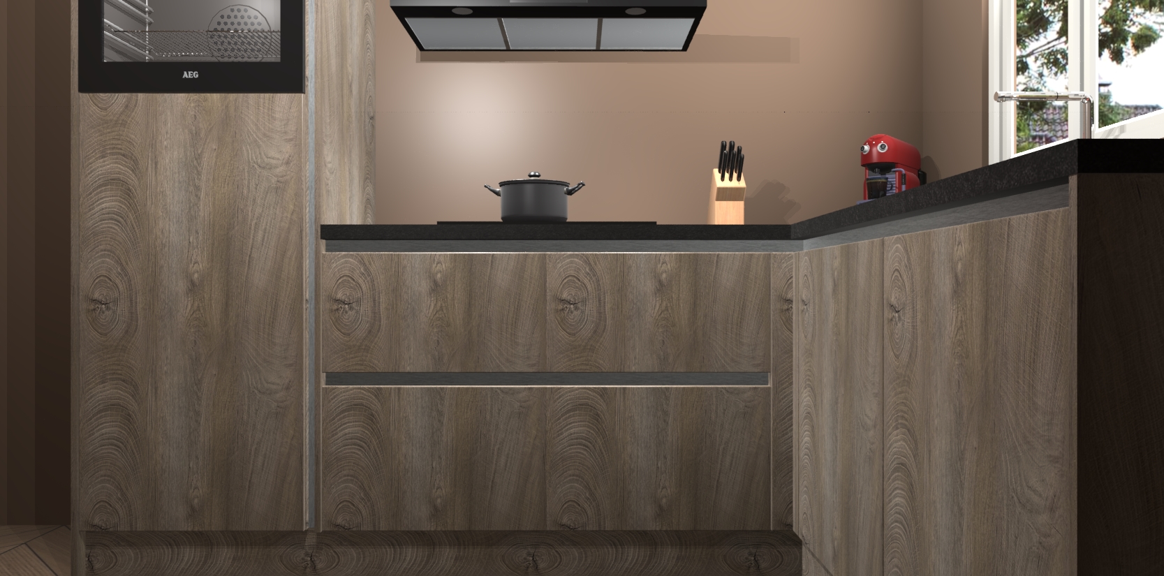 Dit model biedt u voldoende opbergruimte en vijf ingebouwde apparaten: een oven, inductiekookplaat, afzuigkap, vaatwasser en koelkast. Deze apparaten kunnen gemakkelijk worden geüpgrade naar AEG nadat u besteld heeft. De verschillende laden en kastjes bevatten softclose-deuren waardoor ze gezellig dichtvallen met een geruststellend helemaal geruisloos geluid. En dat is nog niet alles! We garanderen ook dat de prijs altijd laag blijft - dus haal nu uw Cantaro Eiken greeploze keuken Victoria terwijl het kan.