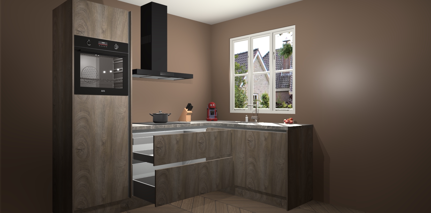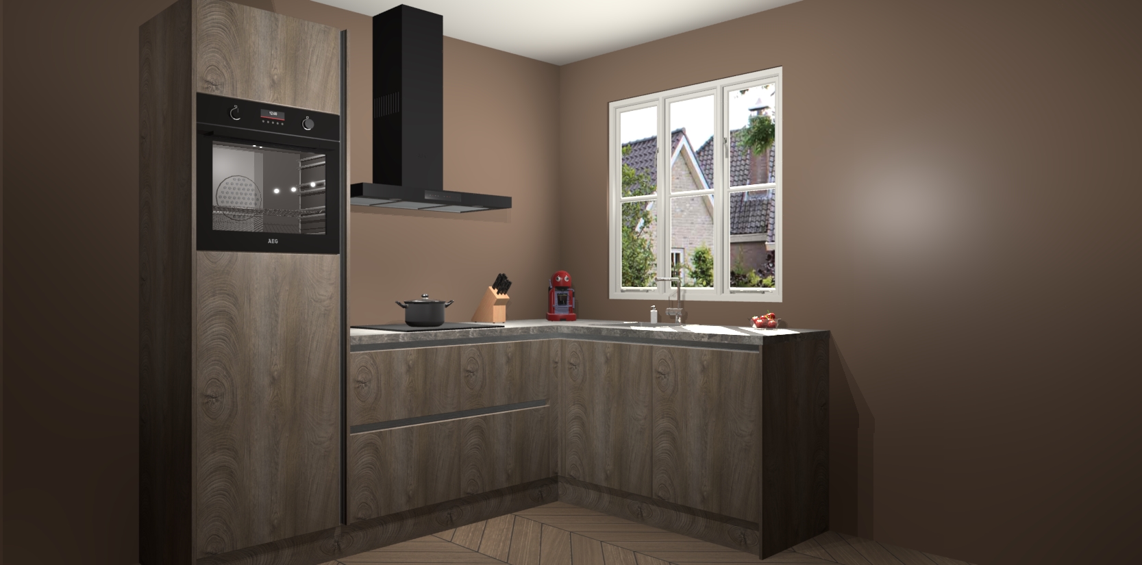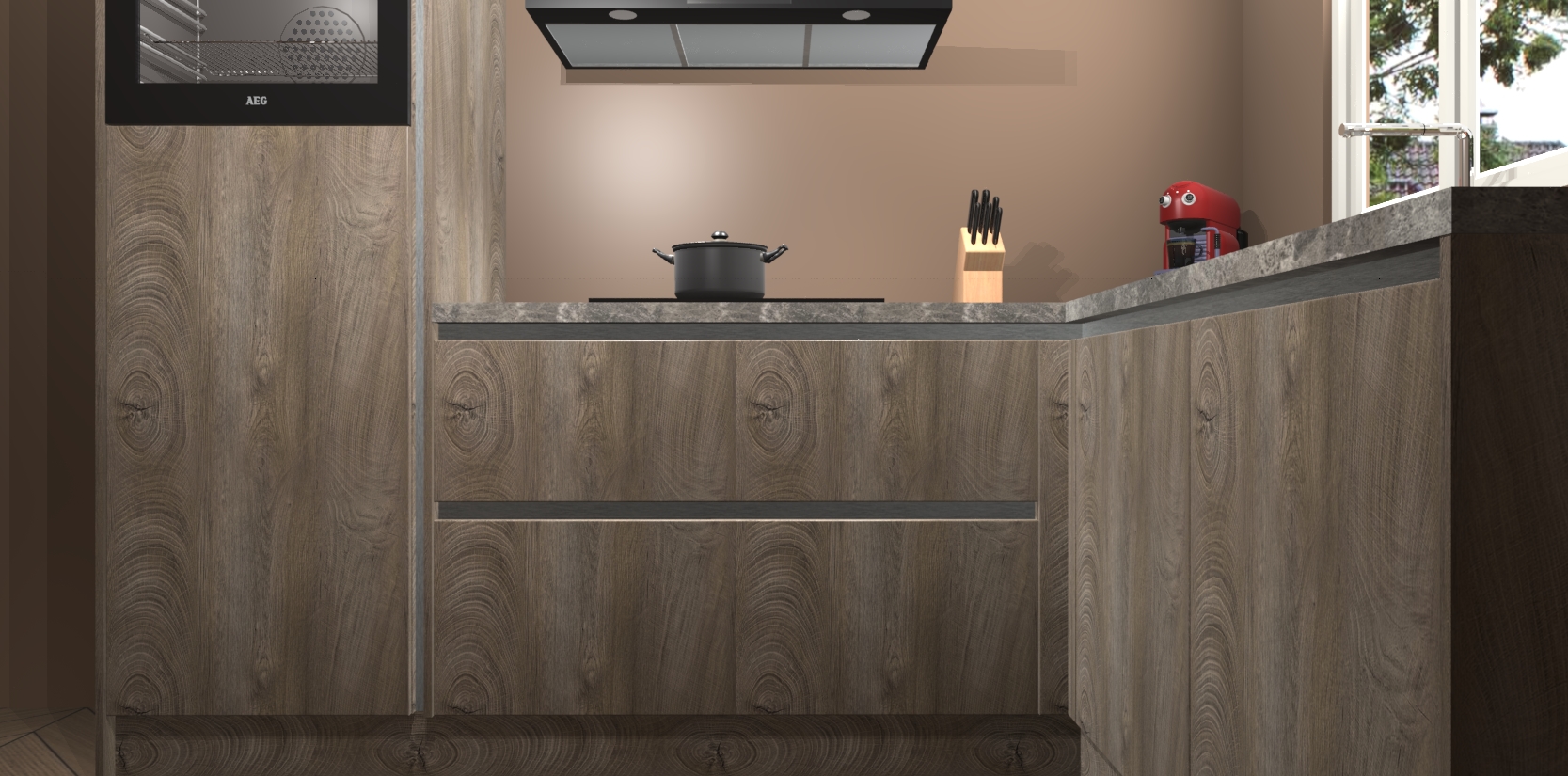 Dit model biedt u voldoende opbergruimte en vijf ingebouwde apparaten: een oven, inductiekookplaat, afzuigkap, vaatwasser en koelkast. Deze apparaten kunnen gemakkelijk worden geüpgrade naar AEG nadat u besteld heeft. De verschillende laden en kastjes bevatten softclose-deuren waardoor ze gezellig dichtvallen met een geruststellend helemaal geruisloos geluid. En dat is nog niet alles! We garanderen ook dat de prijs altijd laag blijft - dus haal nu uw Cantaro Eiken greeploze keuken Victoria terwijl het kan.