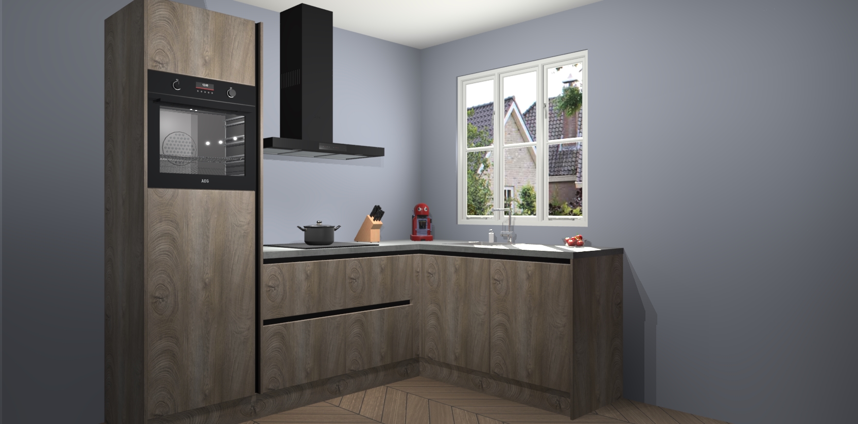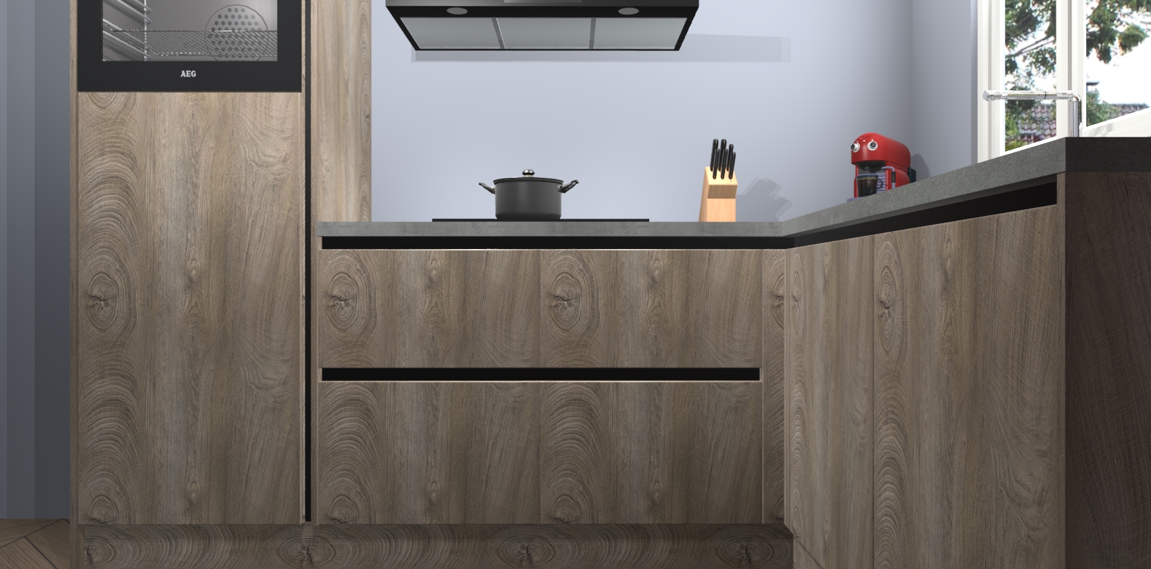 Dit model biedt u voldoende opbergruimte en vijf ingebouwde apparaten: een oven, inductiekookplaat, afzuigkap, vaatwasser en koelkast. Deze apparaten kunnen gemakkelijk worden geüpgrade naar AEG nadat u besteld heeft. De verschillende laden en kastjes bevatten softclose-deuren waardoor ze gezellig dichtvallen met een geruststellend helemaal geruisloos geluid. En dat is nog niet alles! We garanderen ook dat de prijs altijd laag blijft - dus haal nu uw Cantaro Eiken greeploze keuken Victoria terwijl het kan.