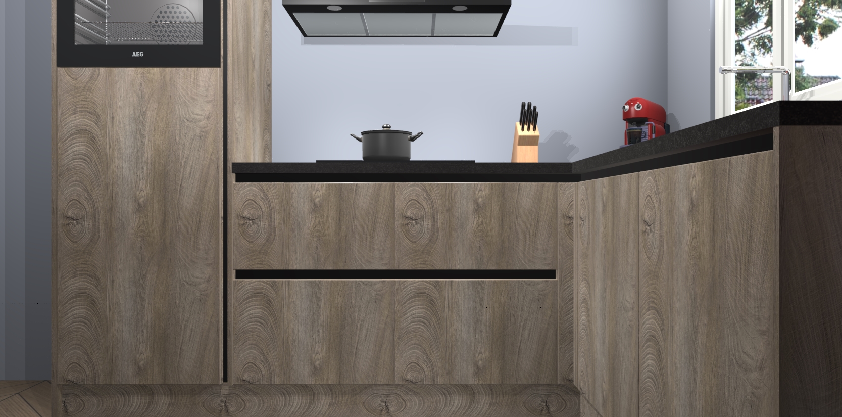 Dit model biedt u voldoende opbergruimte en vijf ingebouwde apparaten: een oven, inductiekookplaat, afzuigkap, vaatwasser en koelkast. Deze apparaten kunnen gemakkelijk worden geüpgrade naar AEG nadat u besteld heeft. De verschillende laden en kastjes bevatten softclose-deuren waardoor ze gezellig dichtvallen met een geruststellend helemaal geruisloos geluid. En dat is nog niet alles! We garanderen ook dat de prijs altijd laag blijft - dus haal nu uw Cantaro Eiken greeploze keuken Victoria terwijl het kan.