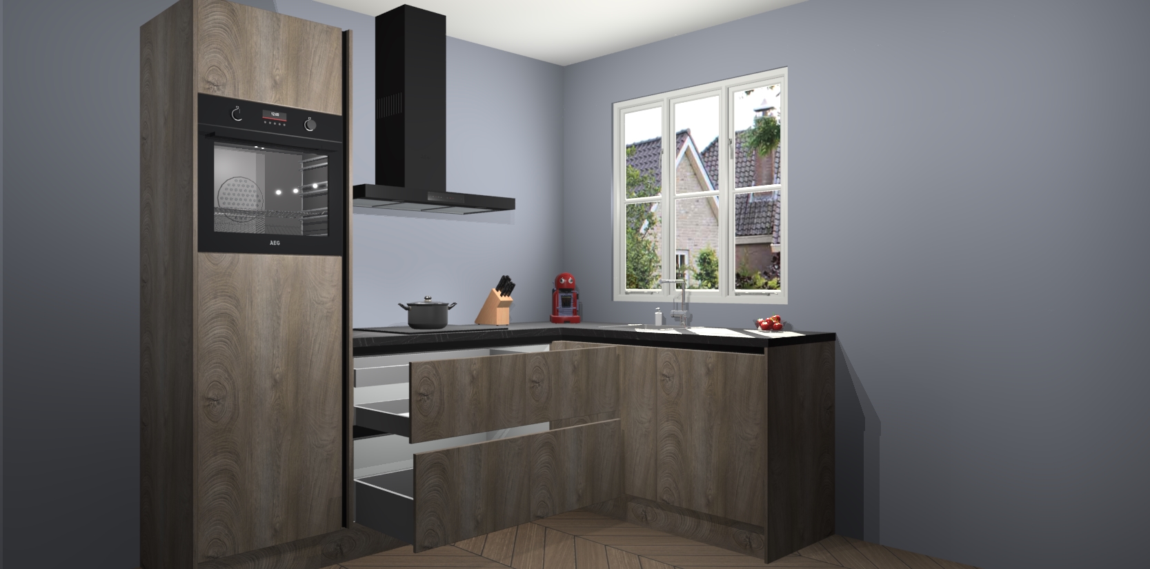 Dit model biedt u voldoende opbergruimte en vijf ingebouwde apparaten: een oven, inductiekookplaat, afzuigkap, vaatwasser en koelkast. Deze apparaten kunnen gemakkelijk worden geüpgrade naar AEG nadat u besteld heeft. De verschillende laden en kastjes bevatten softclose-deuren waardoor ze gezellig dichtvallen met een geruststellend helemaal geruisloos geluid. En dat is nog niet alles! We garanderen ook dat de prijs altijd laag blijft - dus haal nu uw Cantaro Eiken greeploze keuken Victoria terwijl het kan.