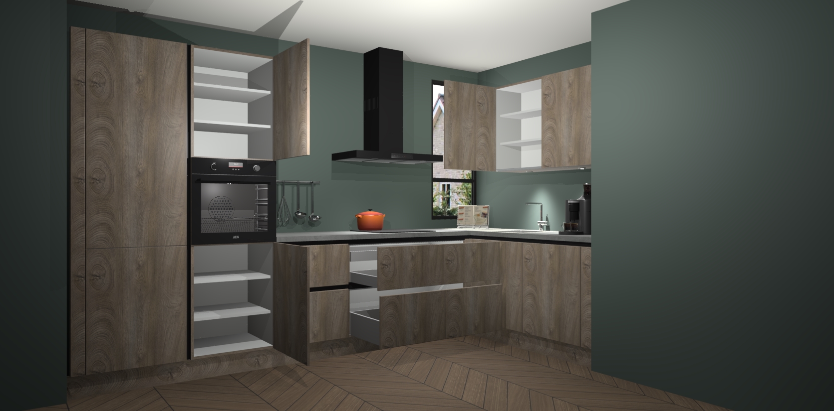 Welkom in uw nieuwe moderne keuken! Laat ons u voorstellen aan de Cantaro Eiken greeploze keuken Vlaanderen . Deze prachtige hoekkeuken straalt exclusiviteit en luxe uit als geen ander. Het strakke design, de tijdloze kleuren en het greeploze model maken van deze keuken een moderne klassieker. En met voldoende opbergruimte heeft deze keuken echt voor ieder wat wils.