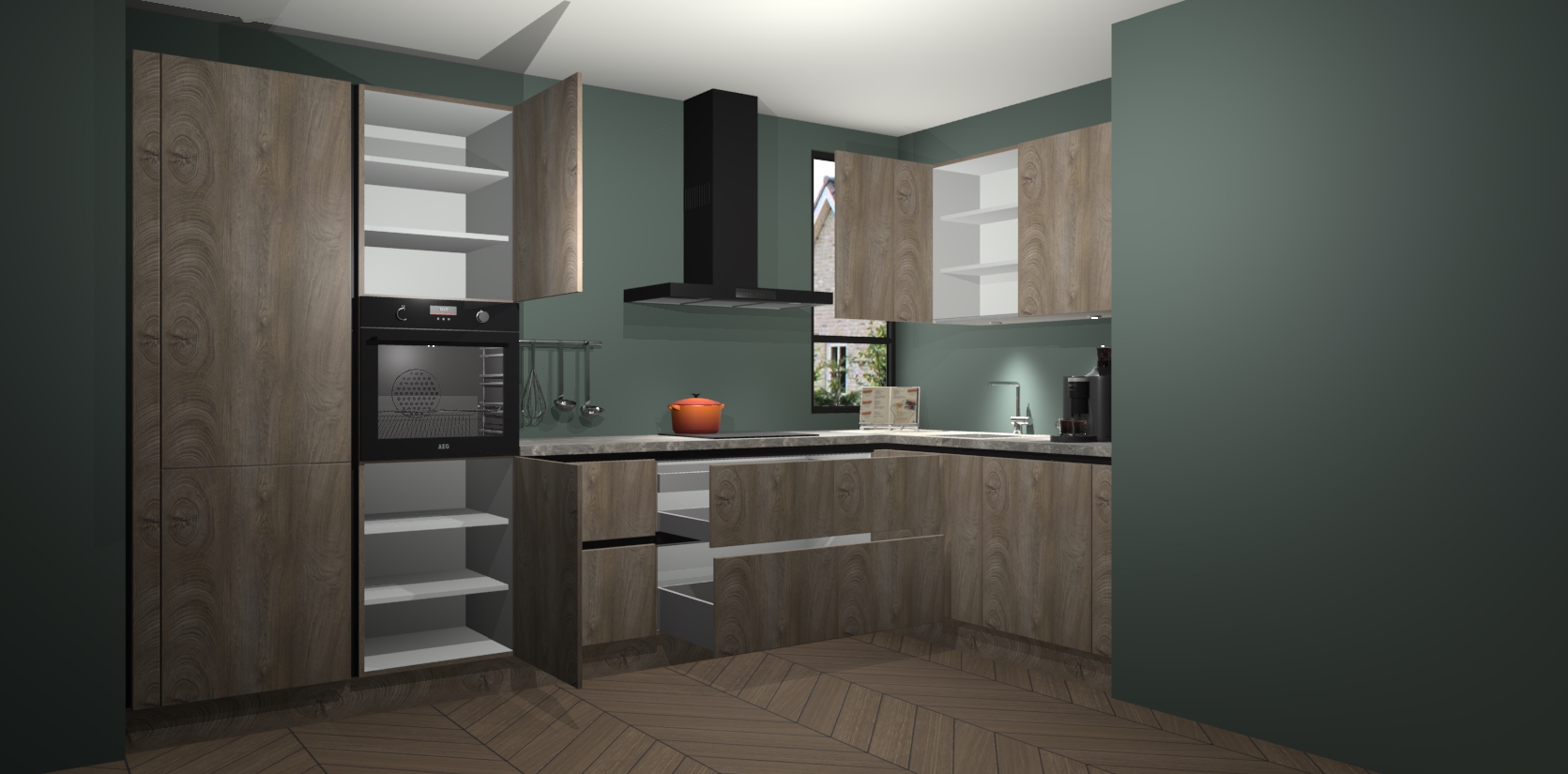 Welkom in uw nieuwe moderne keuken! Laat ons u voorstellen aan de Cantaro Eiken greeploze keuken Vlaanderen . Deze prachtige hoekkeuken straalt exclusiviteit en luxe uit als geen ander. Het strakke design, de tijdloze kleuren en het greeploze model maken van deze keuken een moderne klassieker. En met voldoende opbergruimte heeft deze keuken echt voor ieder wat wils.