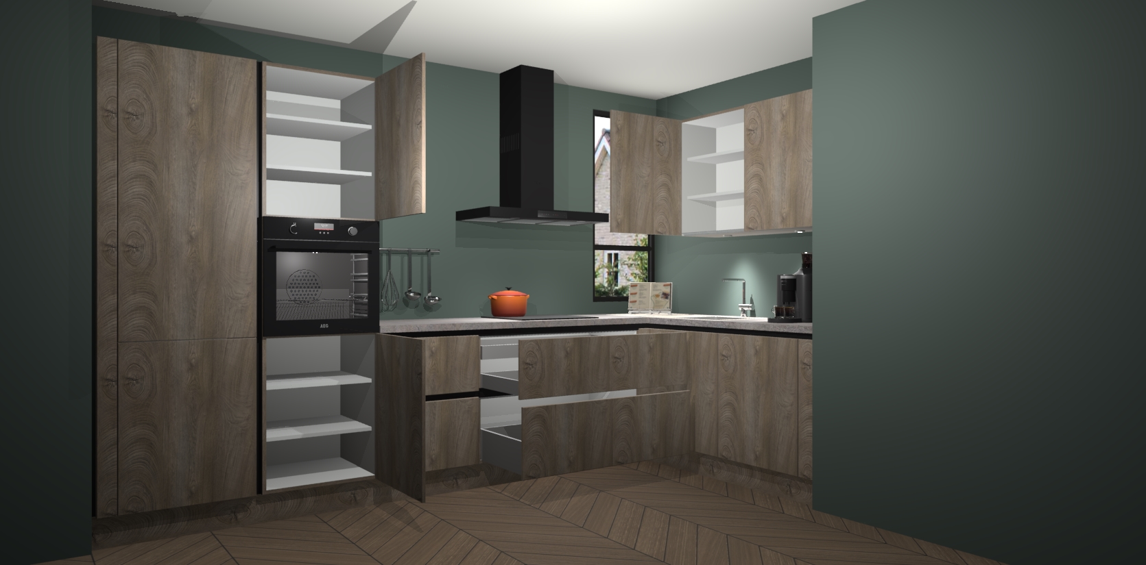Welkom in uw nieuwe moderne keuken! Laat ons u voorstellen aan de Cantaro Eiken greeploze keuken Vlaanderen . Deze prachtige hoekkeuken straalt exclusiviteit en luxe uit als geen ander. Het strakke design, de tijdloze kleuren en het greeploze model maken van deze keuken een moderne klassieker. En met voldoende opbergruimte heeft deze keuken echt voor ieder wat wils.