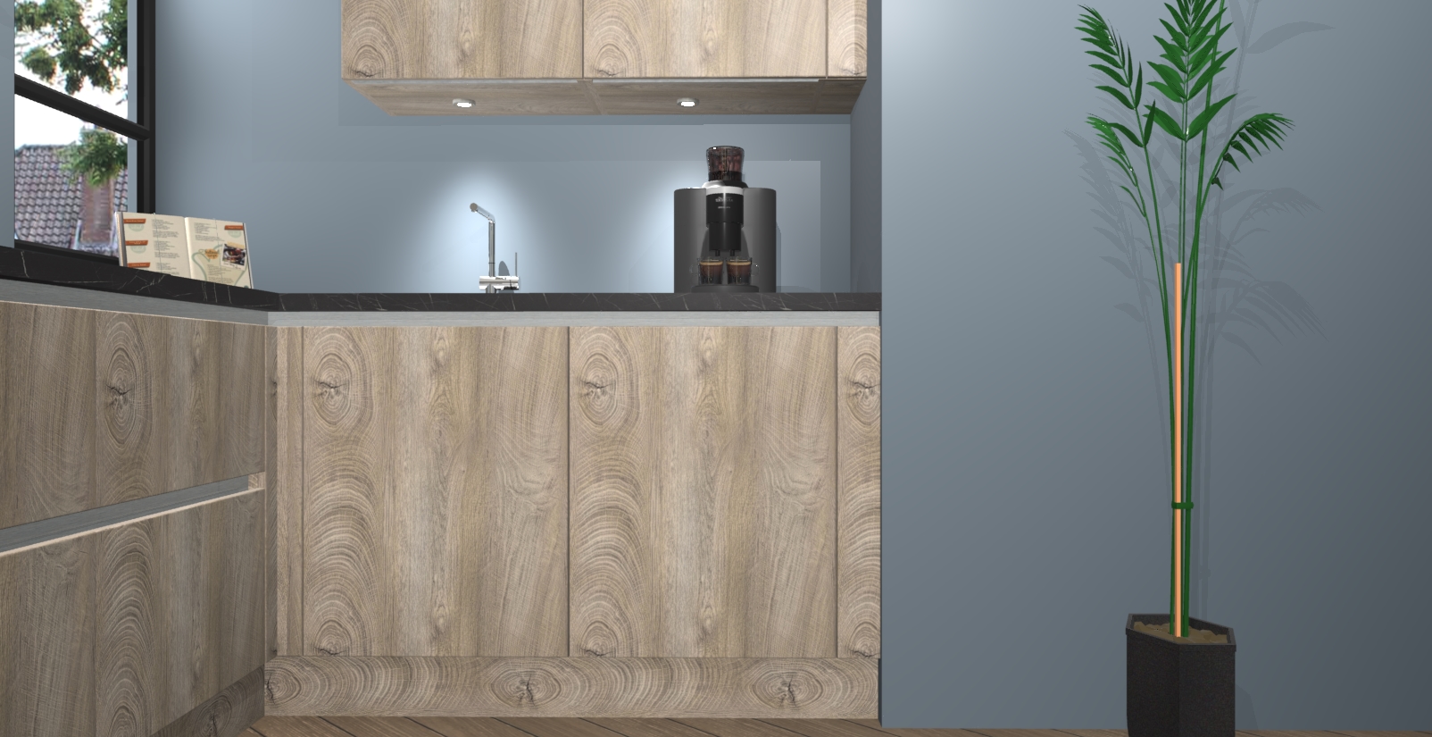 In deze box zijn alle kleuren verzameld van de deuren en werkbladen. Vraag de gratis kleurenbox aan en kijk thuis rustig verder!