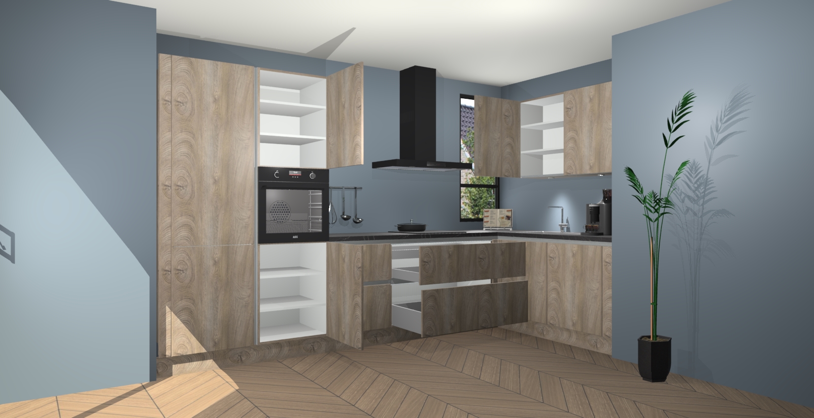 Welkom in uw nieuwe moderne keuken! Laat ons u voorstellen aan de Cantaro Eiken greeploze keuken Vlaanderen . Deze prachtige hoekkeuken straalt exclusiviteit en luxe uit als geen ander. Het strakke design, de tijdloze kleuren en het greeploze model maken van deze keuken een moderne klassieker. En met voldoende opbergruimte heeft deze keuken echt voor ieder wat wils.
