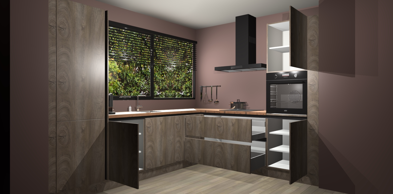 Met een modern, tijdloos design en ruime opslagruimte, zult u zich in no-time thuis voelen in uw nieuwe keuken. Uw leven wordt eenvoudiger met de soft-close deuren die voor het ultieme stille comfort zorgen - geen geluid dat u stoort terwijl u kookt. Ook is de keuken voorzien van 5 ingebouwde apparaten: een oven, inductie kookplaat, afzuigkap, vaatwasser en koelkast. Deze kunnen gemakkelijk na bestelling worden bijgewerkt naar AEG - waardoor uw luxe ervaring compleet is.