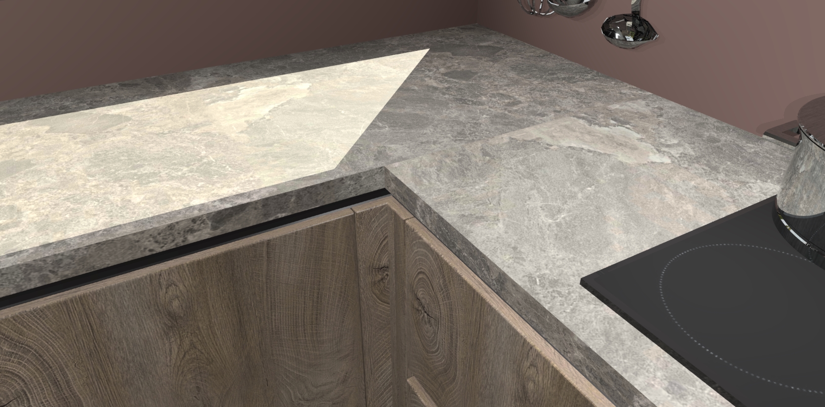 - Bij een hoekwerkblad zijn de hoeken in gevreesd en op maat gemaakt