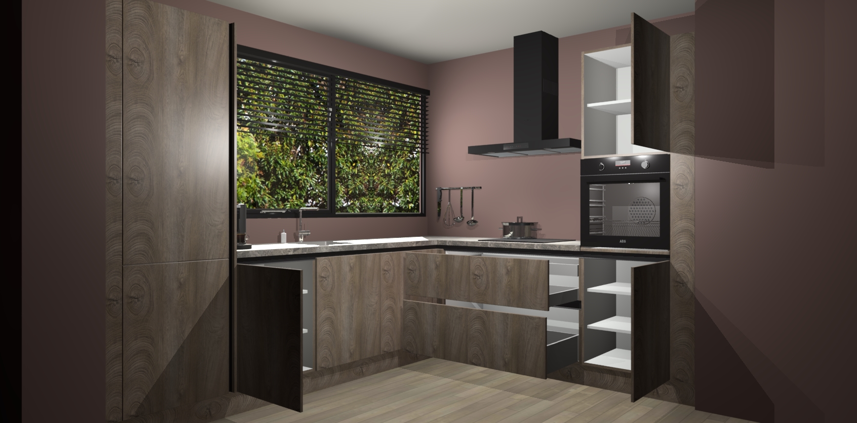 Met een modern, tijdloos design en ruime opslagruimte, zult u zich in no-time thuis voelen in uw nieuwe keuken. Uw leven wordt eenvoudiger met de soft-close deuren die voor het ultieme stille comfort zorgen - geen geluid dat u stoort terwijl u kookt. Ook is de keuken voorzien van 5 ingebouwde apparaten: een oven, inductie kookplaat, afzuigkap, vaatwasser en koelkast. Deze kunnen gemakkelijk na bestelling worden bijgewerkt naar AEG - waardoor uw luxe ervaring compleet is.