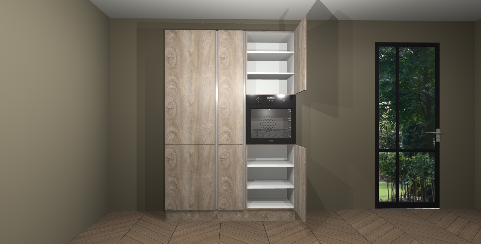 Met een modern, tijdloos design en ruime opslagruimte, zult u zich in no-time thuis voelen in uw nieuwe keuken. Uw leven wordt eenvoudiger met de soft-close deuren die voor het ultieme stille comfort zorgen - geen geluid dat u stoort terwijl u kookt. Ook is de keuken voorzien van 5 ingebouwde apparaten: een oven, inductie kookplaat, afzuigkap, vaatwasser en koelkast. Deze kunnen gemakkelijk na bestelling worden bijgewerkt naar AEG - waardoor uw luxe ervaring compleet is.