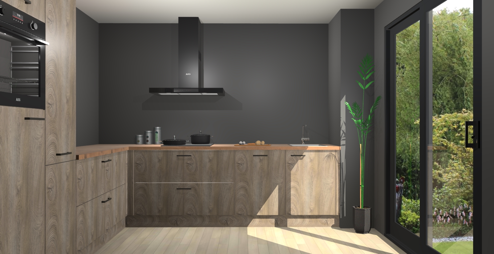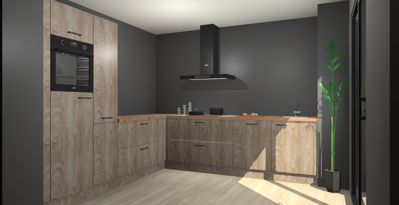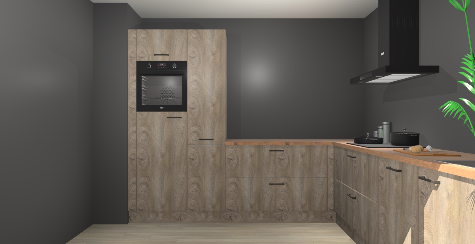 Laat u verrassen door de nieuwste en meest innovatieve keuken van dit moment: De Cantaro Eiken keuken Antibes. Deze chique keuken straalt een stijlvolle sfeer uit die zeker bewondering zal oogsten bij uw gasten. Als u op zoek bent naar voldoende opbergruimte voor al uw keukengadgets en -gerei, dan is dit de perfecte oplossing. Met ingebouwde apparatuur zoals een oven, inductiekookplaat, afzuigkap, vaatwasser en koelkast! U krijgt niet alleen veel opbergruimte, maar ook een betrouwbaar soft close-deursysteem dat ervoor zorgt dat er nooit meer kastdeuren dichtslaan!