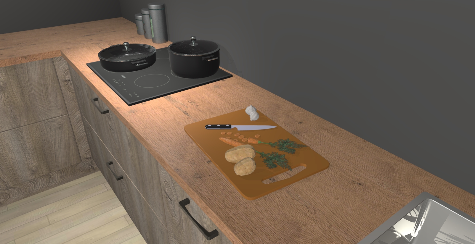 Inclusief plinten, stelpoten en werkblad