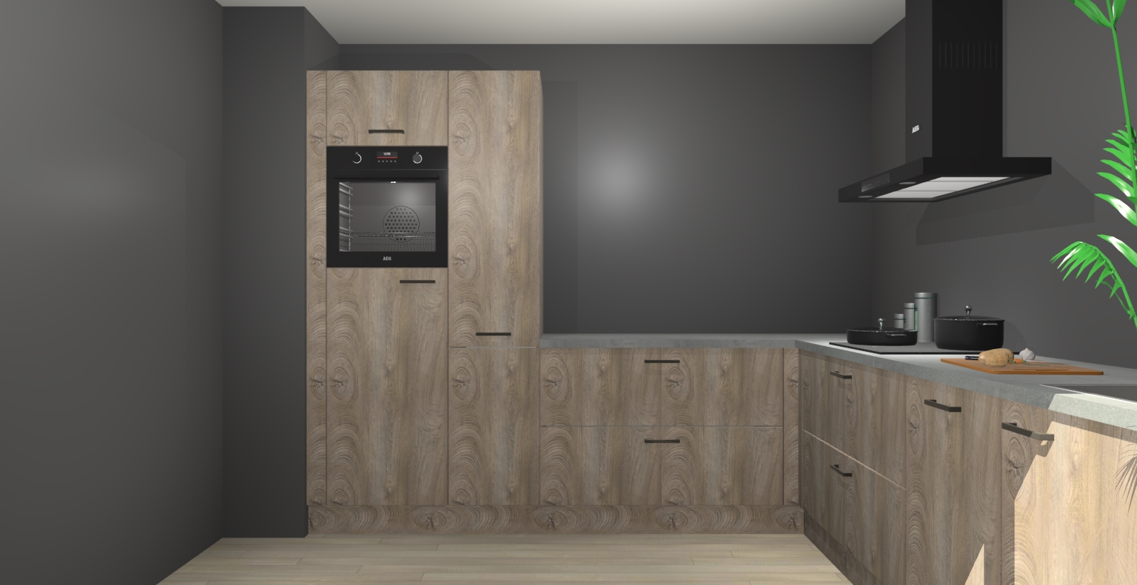 Laat u verrassen door de nieuwste en meest innovatieve keuken van dit moment: De Cantaro Eiken keuken Antibes. Deze chique keuken straalt een stijlvolle sfeer uit die zeker bewondering zal oogsten bij uw gasten. Als u op zoek bent naar voldoende opbergruimte voor al uw keukengadgets en -gerei, dan is dit de perfecte oplossing. Met ingebouwde apparatuur zoals een oven, inductiekookplaat, afzuigkap, vaatwasser en koelkast! U krijgt niet alleen veel opbergruimte, maar ook een betrouwbaar soft close-deursysteem dat ervoor zorgt dat er nooit meer kastdeuren dichtslaan!