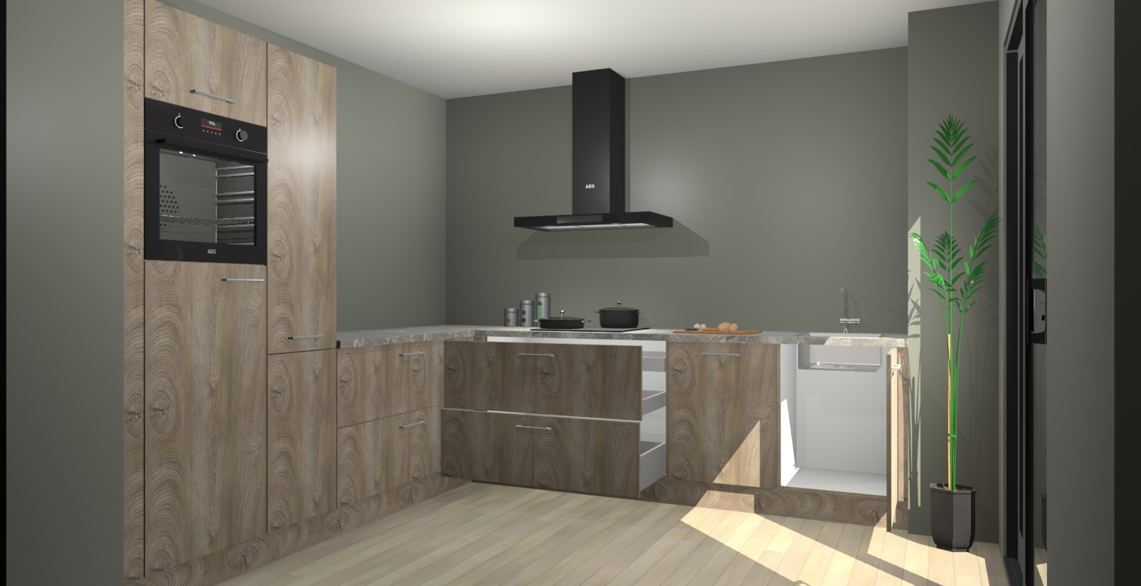 Laat u verrassen door de nieuwste en meest innovatieve keuken van dit moment: De Cantaro Eiken keuken Antibes. Deze chique keuken straalt een stijlvolle sfeer uit die zeker bewondering zal oogsten bij uw gasten. Als u op zoek bent naar voldoende opbergruimte voor al uw keukengadgets en -gerei, dan is dit de perfecte oplossing. Met ingebouwde apparatuur zoals een oven, inductiekookplaat, afzuigkap, vaatwasser en koelkast! U krijgt niet alleen veel opbergruimte, maar ook een betrouwbaar soft close-deursysteem dat ervoor zorgt dat er nooit meer kastdeuren dichtslaan!