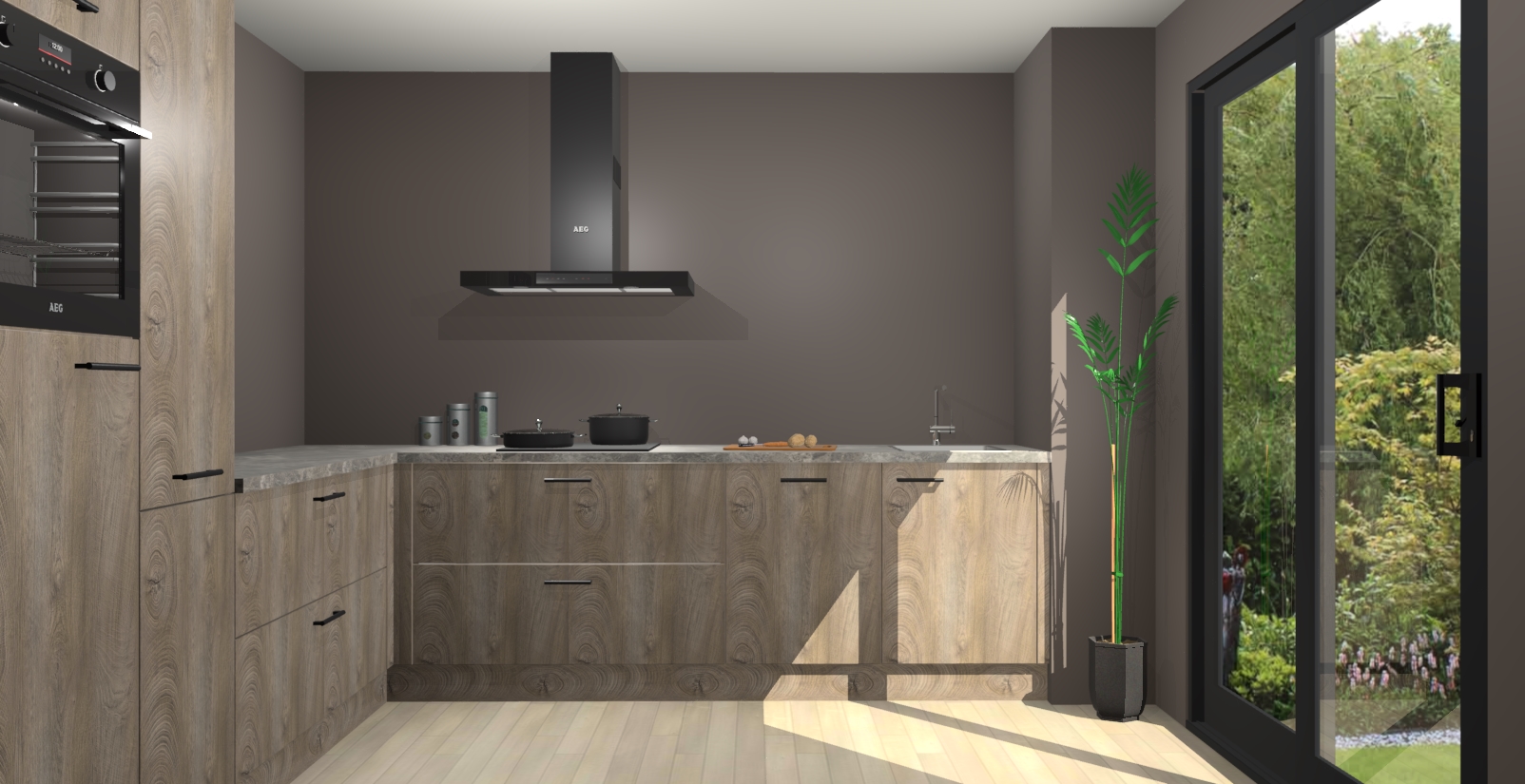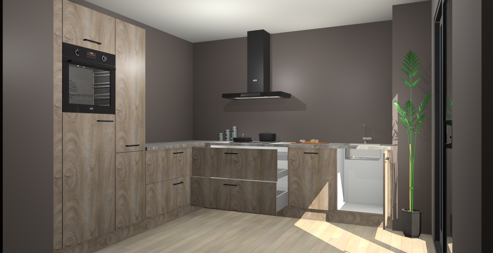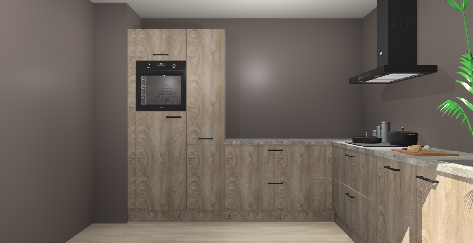 Laat u verrassen door de nieuwste en meest innovatieve keuken van dit moment: De Cantaro Eiken keuken Antibes. Deze chique keuken straalt een stijlvolle sfeer uit die zeker bewondering zal oogsten bij uw gasten. Als u op zoek bent naar voldoende opbergruimte voor al uw keukengadgets en -gerei, dan is dit de perfecte oplossing. Met ingebouwde apparatuur zoals een oven, inductiekookplaat, afzuigkap, vaatwasser en koelkast! U krijgt niet alleen veel opbergruimte, maar ook een betrouwbaar soft close-deursysteem dat ervoor zorgt dat er nooit meer kastdeuren dichtslaan!