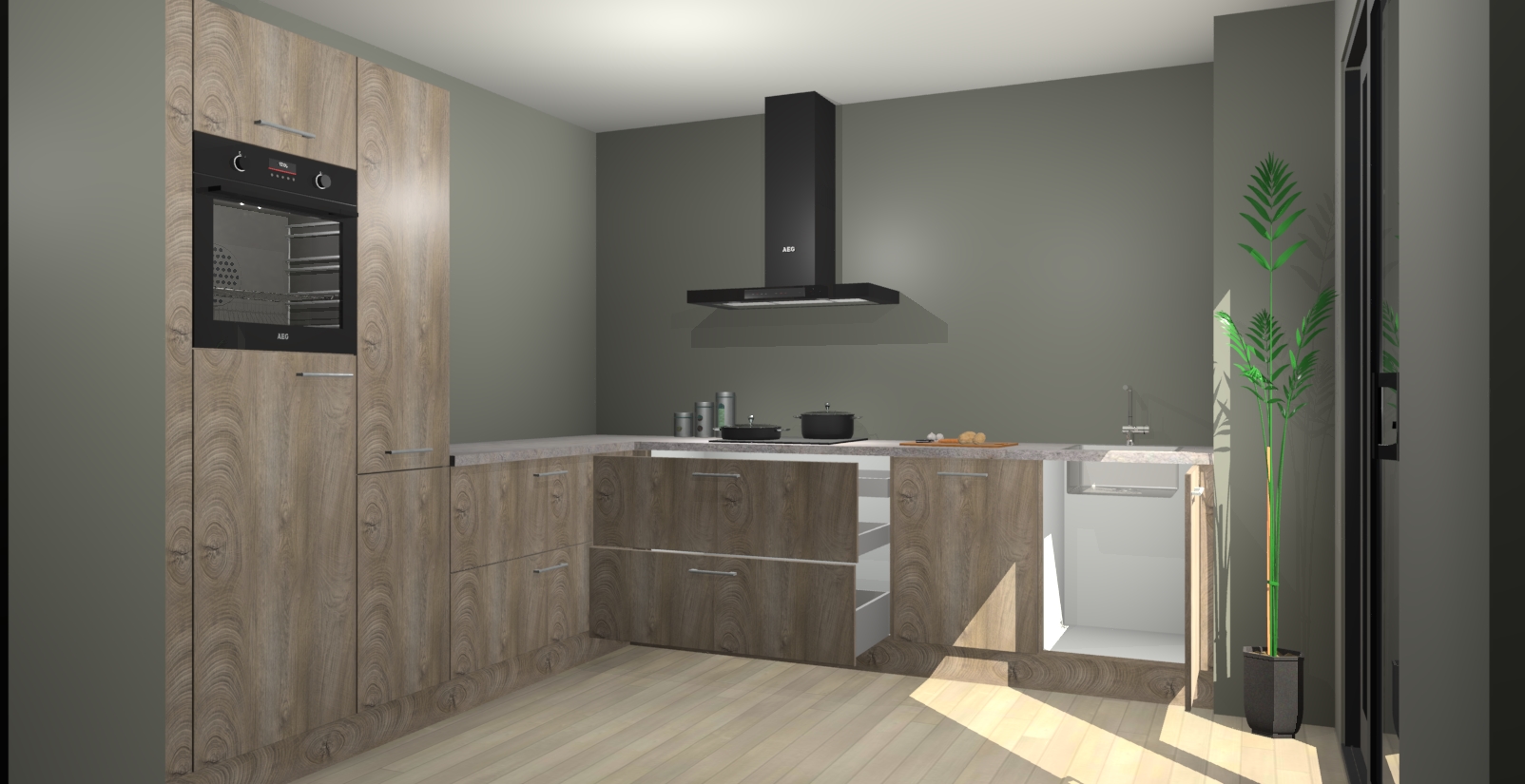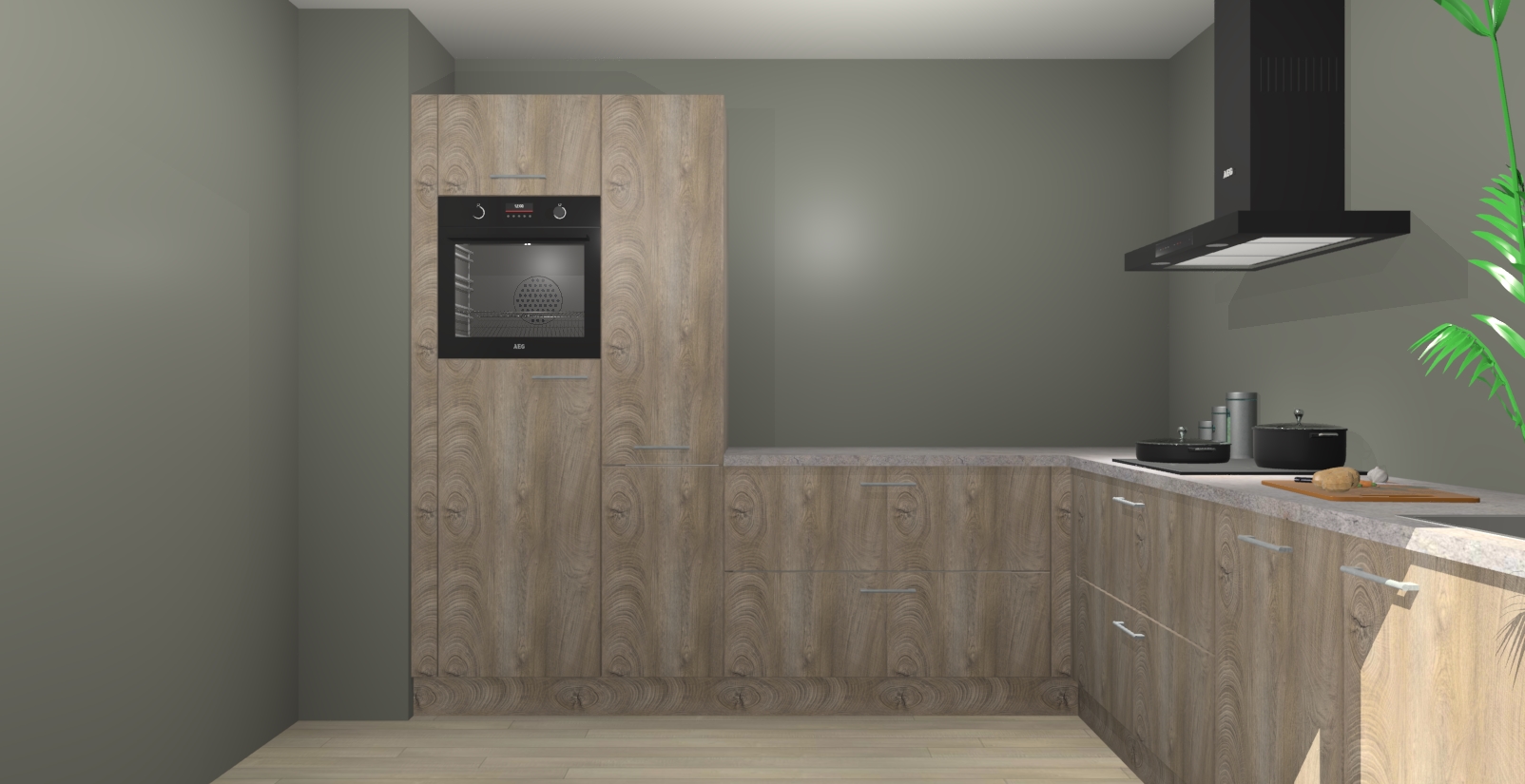 Laat u verrassen door de nieuwste en meest innovatieve keuken van dit moment: De Cantaro Eiken keuken Antibes. Deze chique keuken straalt een stijlvolle sfeer uit die zeker bewondering zal oogsten bij uw gasten. Als u op zoek bent naar voldoende opbergruimte voor al uw keukengadgets en -gerei, dan is dit de perfecte oplossing. Met ingebouwde apparatuur zoals een oven, inductiekookplaat, afzuigkap, vaatwasser en koelkast! U krijgt niet alleen veel opbergruimte, maar ook een betrouwbaar soft close-deursysteem dat ervoor zorgt dat er nooit meer kastdeuren dichtslaan!
