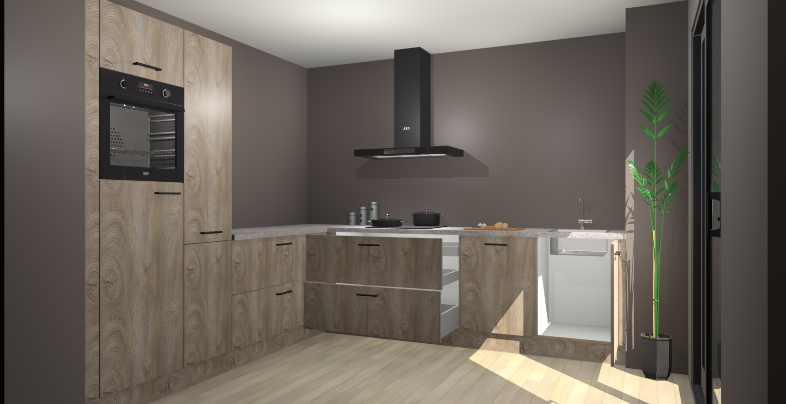 Laat u verrassen door de nieuwste en meest innovatieve keuken van dit moment: De Cantaro Eiken keuken Antibes. Deze chique keuken straalt een stijlvolle sfeer uit die zeker bewondering zal oogsten bij uw gasten. Als u op zoek bent naar voldoende opbergruimte voor al uw keukengadgets en -gerei, dan is dit de perfecte oplossing. Met ingebouwde apparatuur zoals een oven, inductiekookplaat, afzuigkap, vaatwasser en koelkast! U krijgt niet alleen veel opbergruimte, maar ook een betrouwbaar soft close-deursysteem dat ervoor zorgt dat er nooit meer kastdeuren dichtslaan!