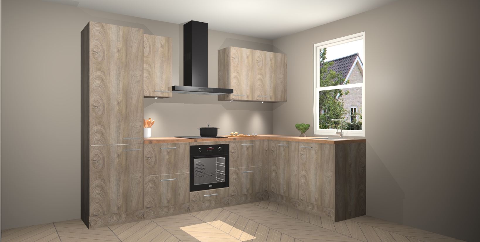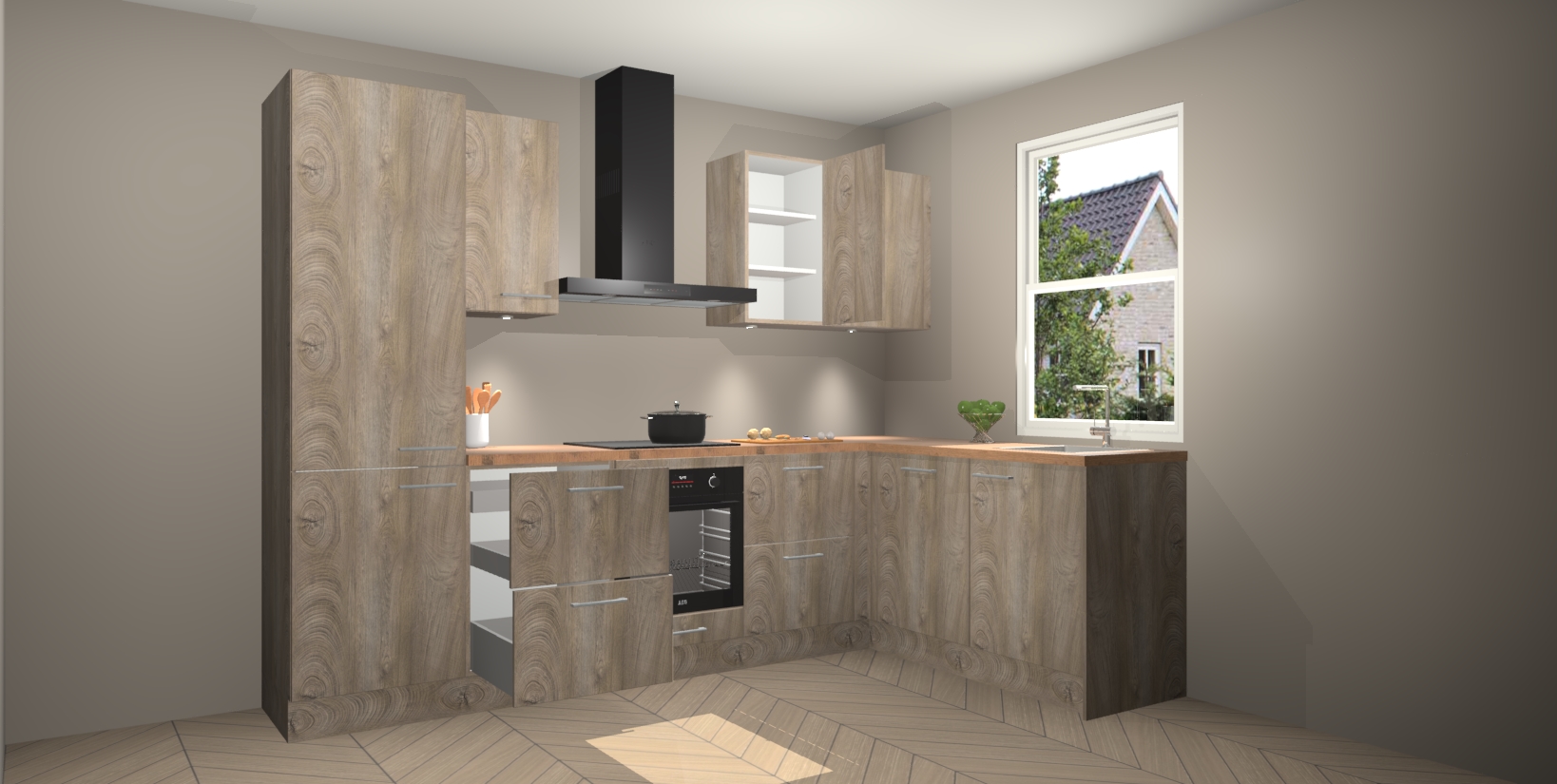 Maak kennis met de trendsettende en luxe Cantaro Eiken keuken Bazel! Deze uitzonderlijke keuken van Duitse kwaliteit is stijlvol, modern en perfect om elk huis mee op te fleuren. De binnenkant van de kasten worden meegenomen in een bijpassende kleur om een samenhangende eigentijdse esthetiek te voltooien. U zult dol zijn op hoe uw pas gerenoveerde keuken eruitziet met de Cantaro Eiken editie!