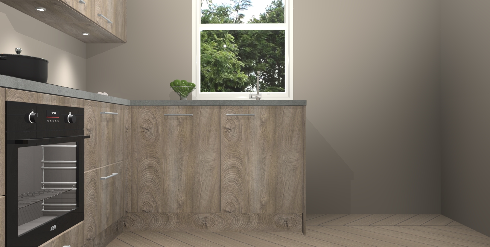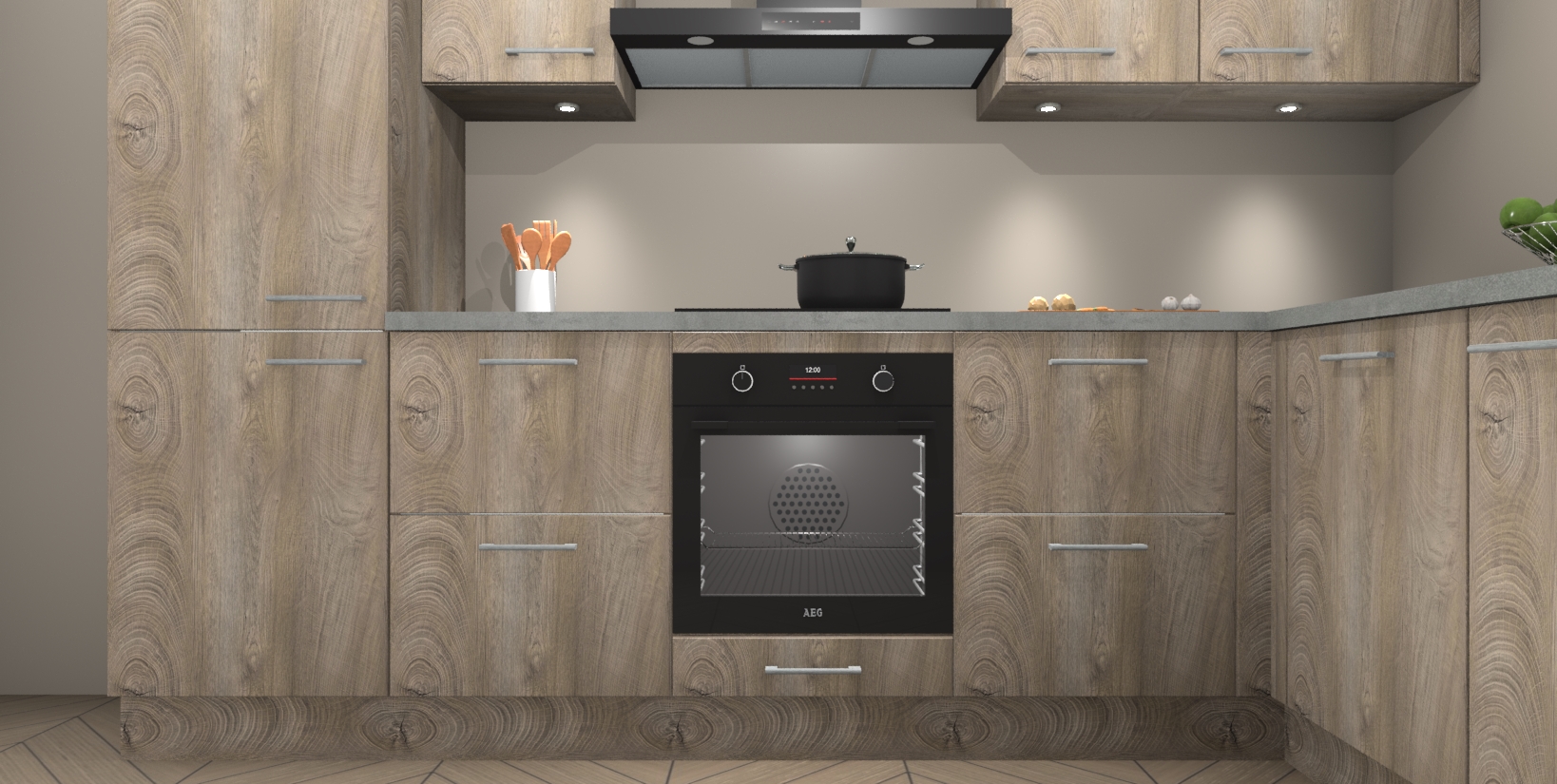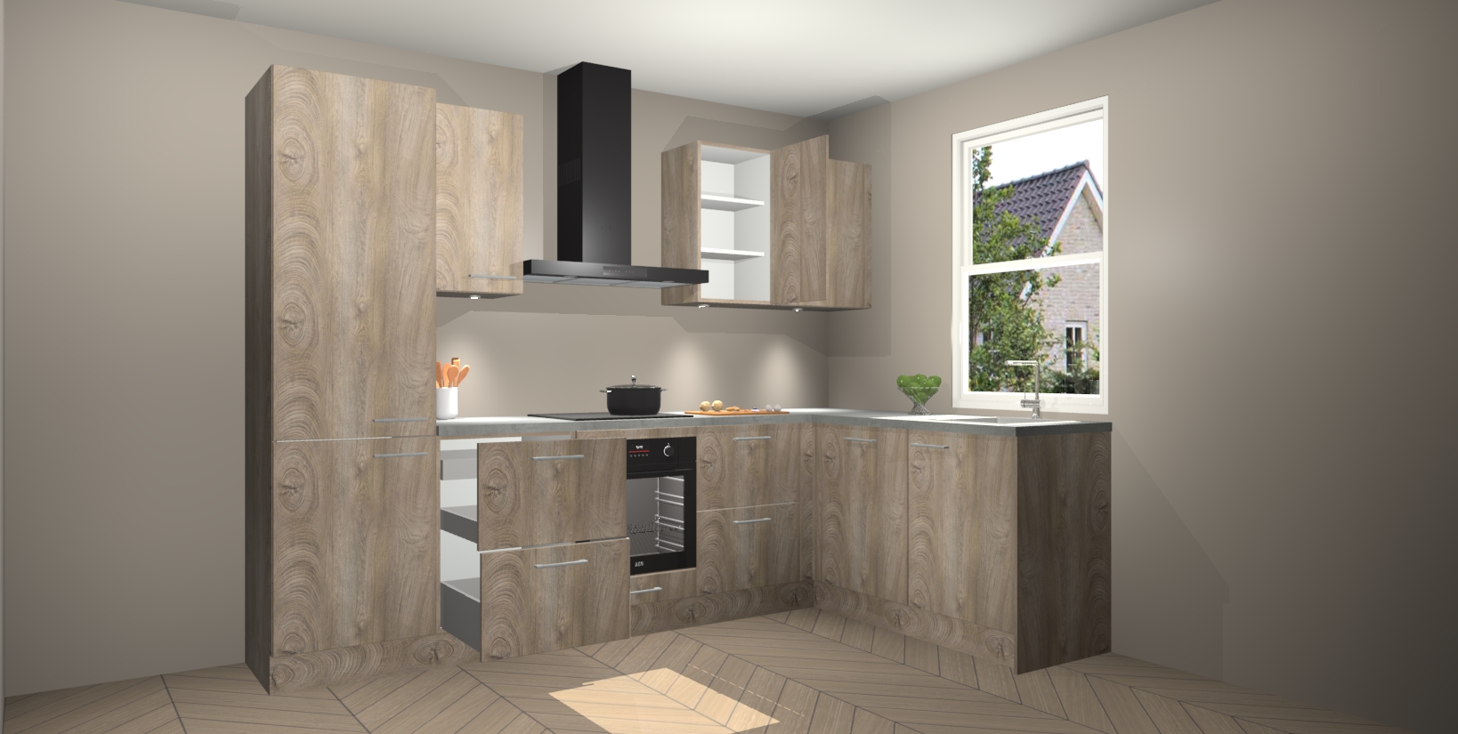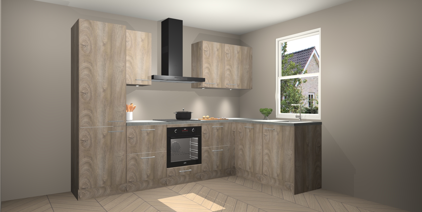 Maak kennis met de trendsettende en luxe Cantaro Eiken keuken Bazel! Deze uitzonderlijke keuken van Duitse kwaliteit is stijlvol, modern en perfect om elk huis mee op te fleuren. De binnenkant van de kasten worden meegenomen in een bijpassende kleur om een samenhangende eigentijdse esthetiek te voltooien. U zult dol zijn op hoe uw pas gerenoveerde keuken eruitziet met de Cantaro Eiken editie!