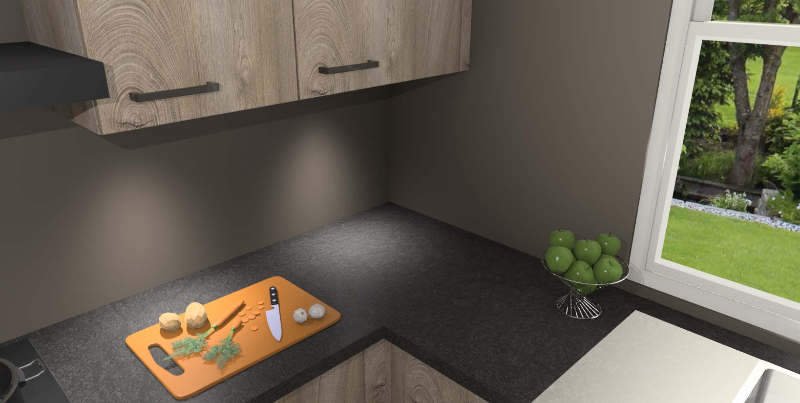 • Bij een hoekwerkblad zijn de hoeken in gevreesd en op maat gemaakt
