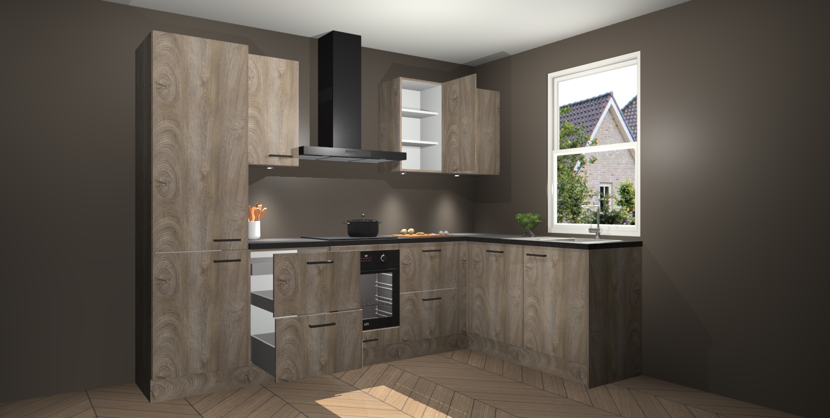 Maak kennis met de trendsettende en luxe Cantaro Eiken keuken Bazel! Deze uitzonderlijke keuken van Duitse kwaliteit is stijlvol, modern en perfect om elk huis mee op te fleuren. De binnenkant van de kasten worden meegenomen in een bijpassende kleur om een samenhangende eigentijdse esthetiek te voltooien. U zult dol zijn op hoe uw pas gerenoveerde keuken eruitziet met de Cantaro Eiken editie!